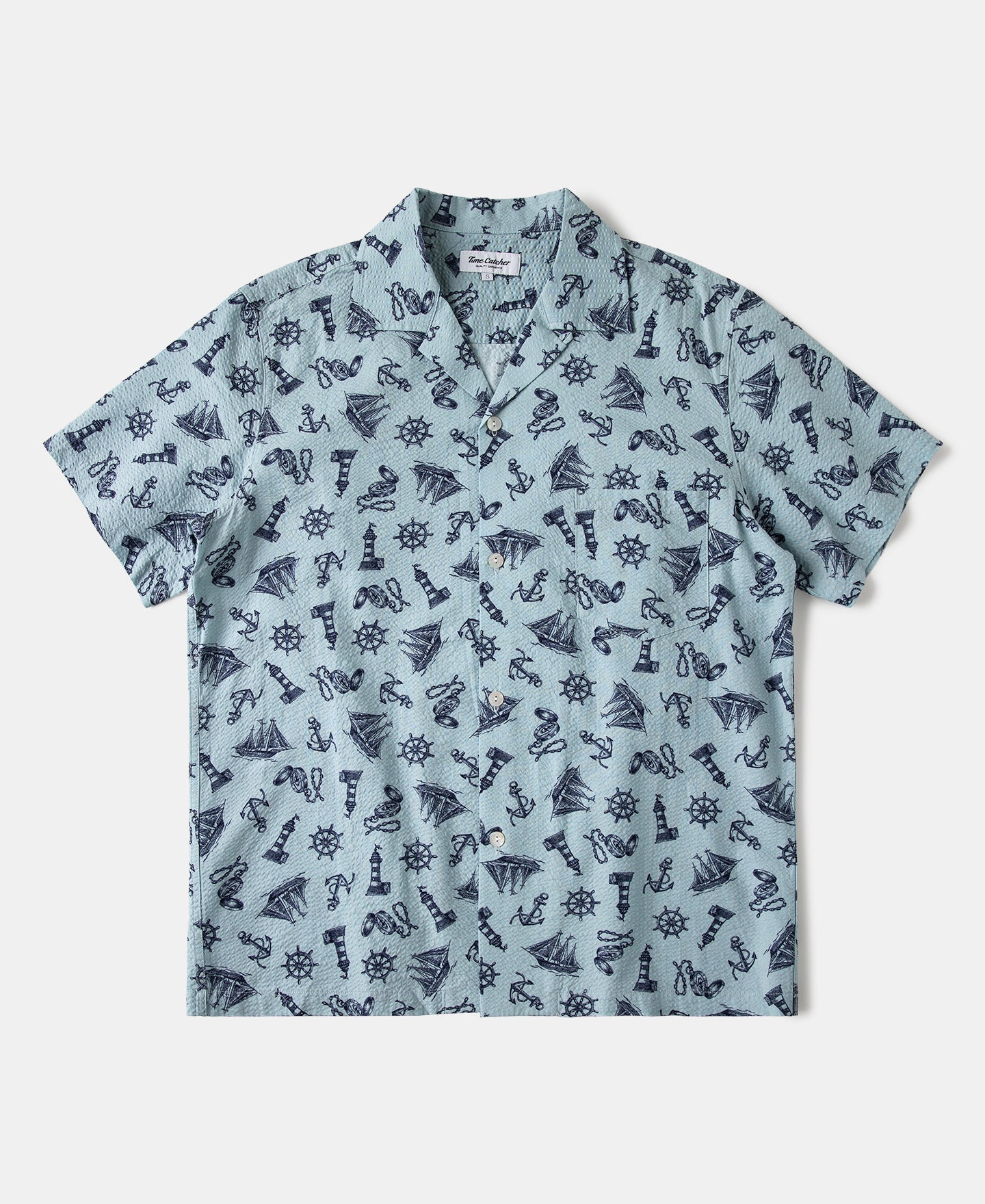 Made from Japanese seersucker fabric, this shirt is exceptionally breathable and comfortable, offering a rich texture. Featuring nautical-themed prints, it is the perfect choice for stylish summer wear.