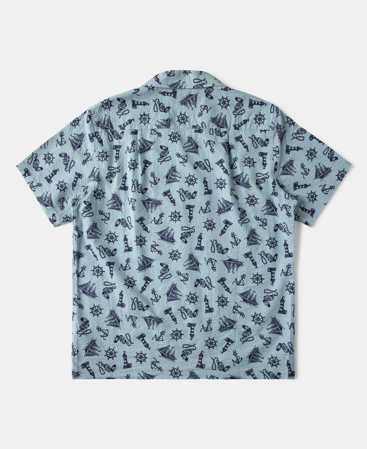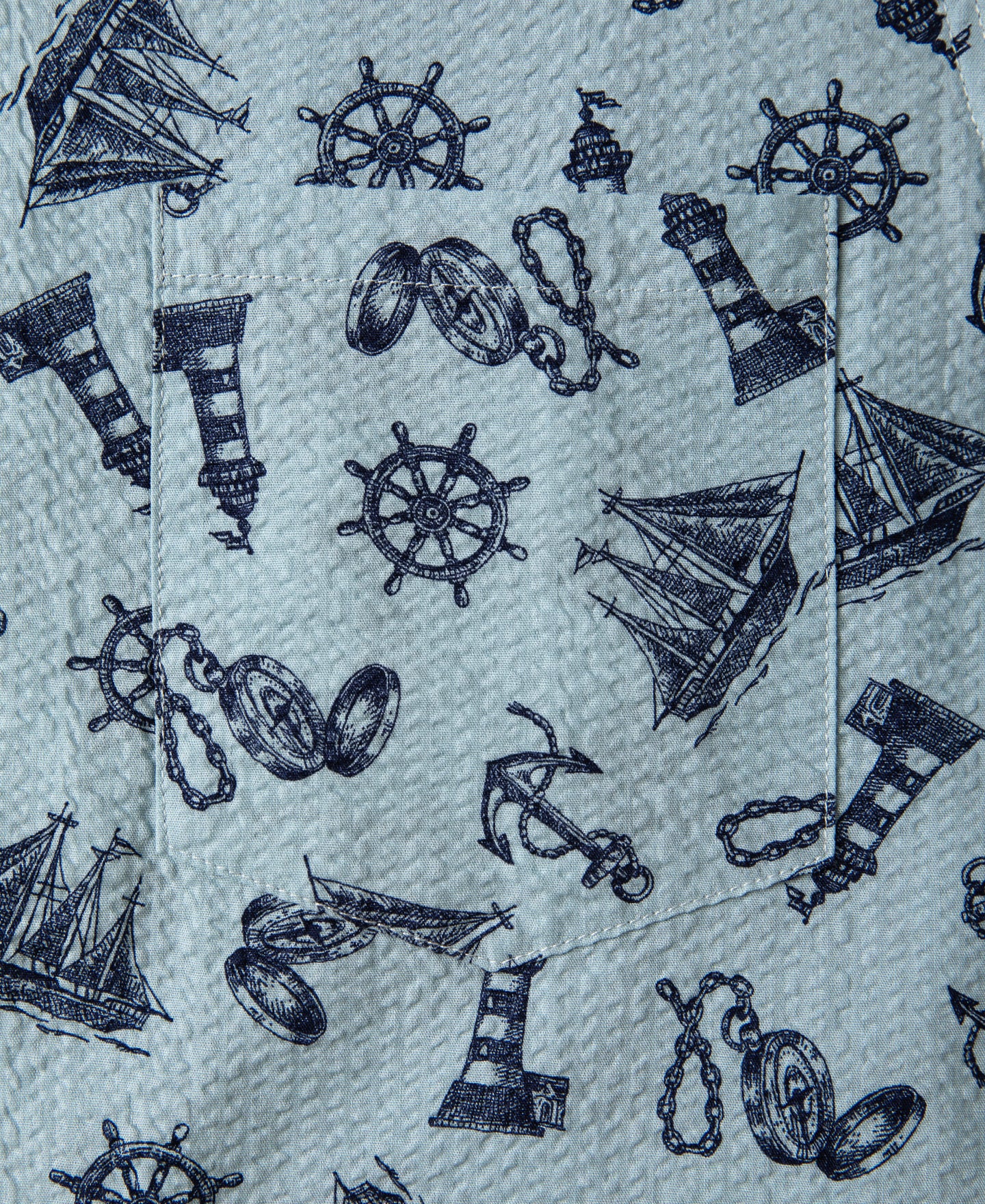 Nautical Printed Seersucker Short Sleeve Camp Shirt - Light Blue