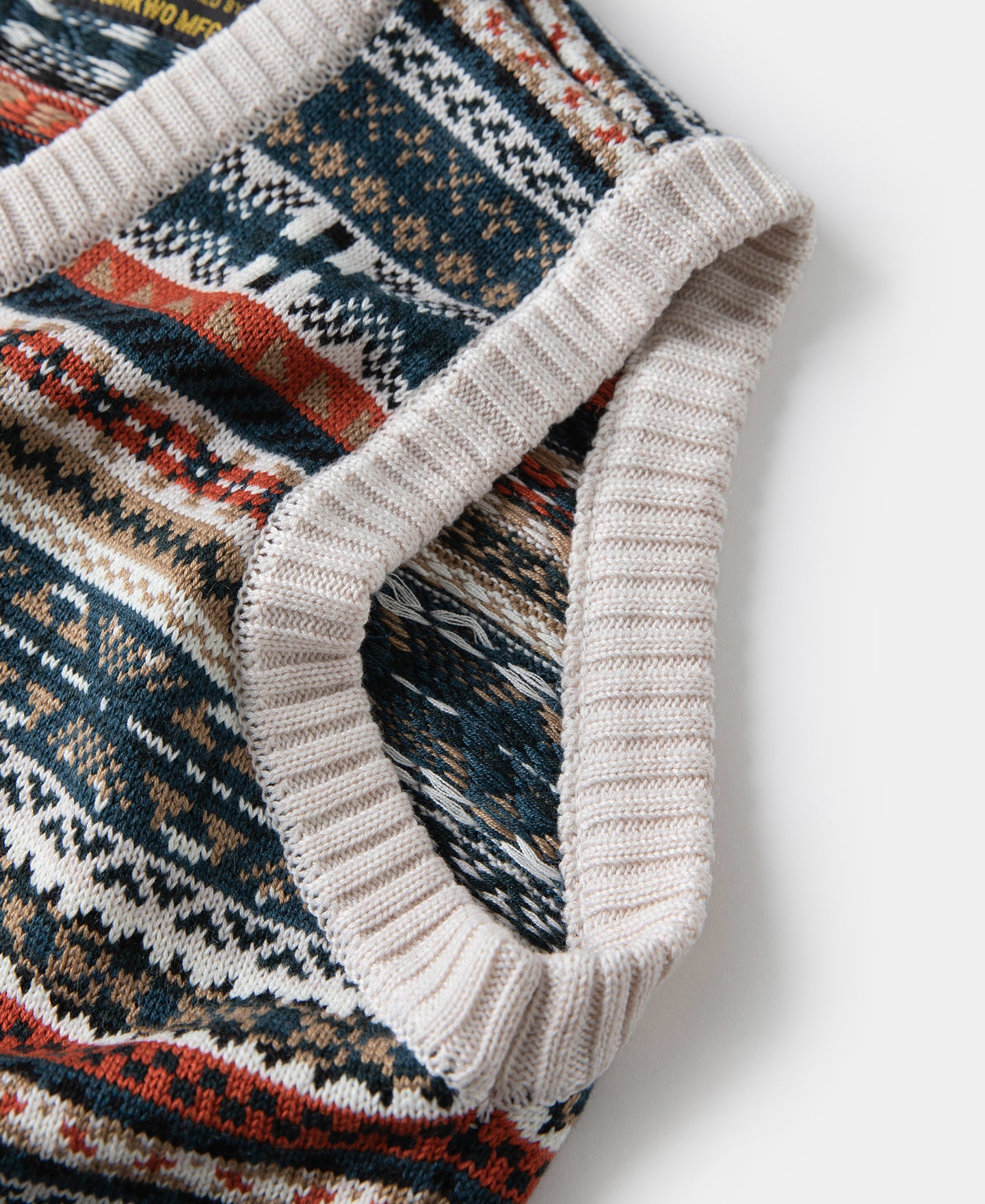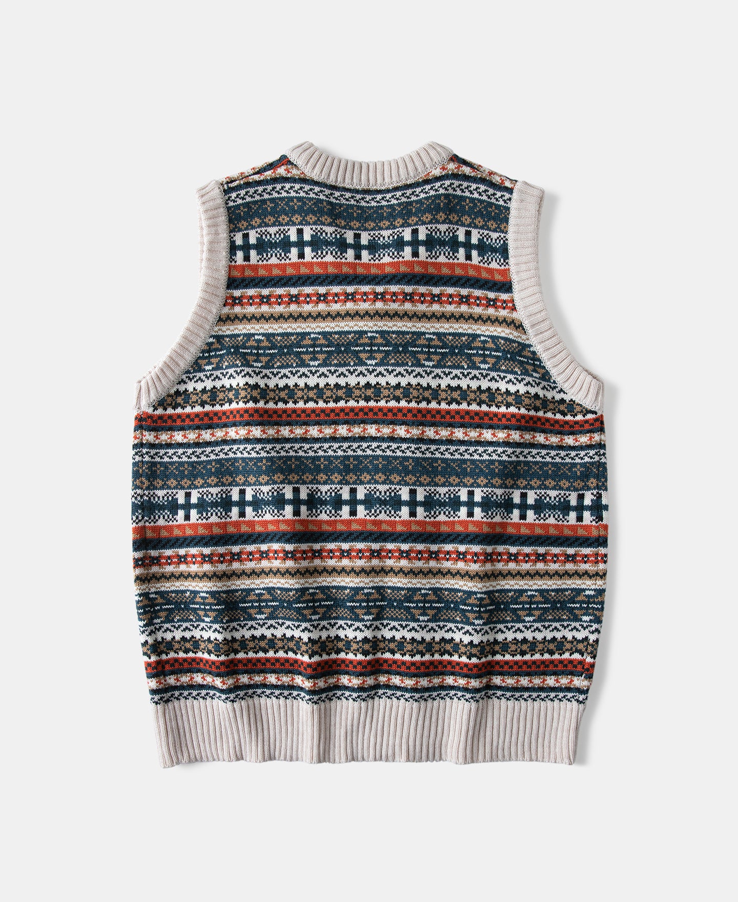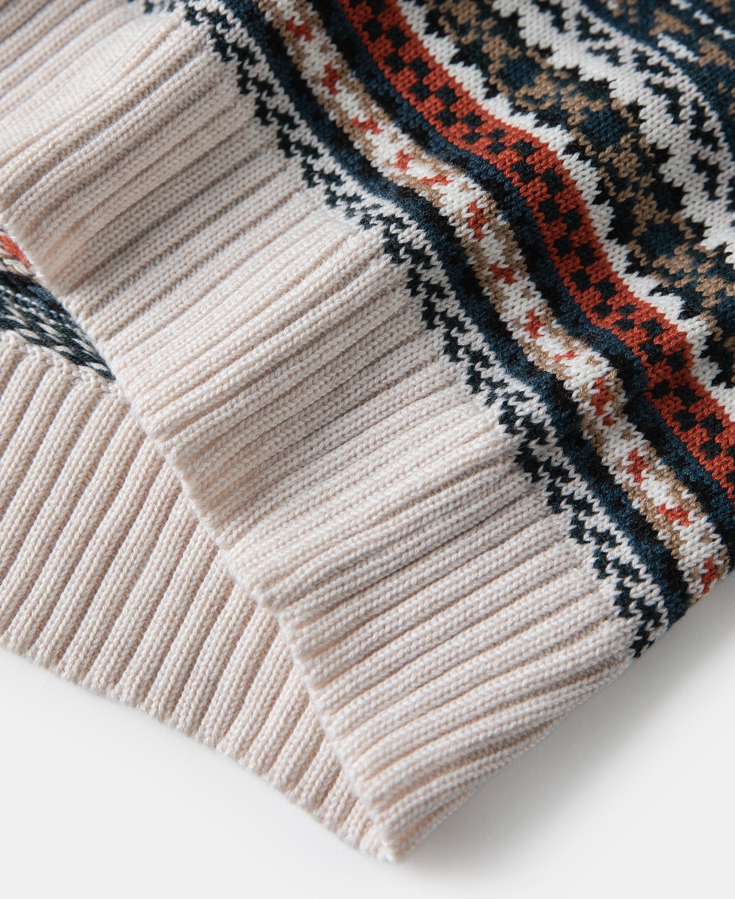 The Fair Isle pattern carries a refined, vintage artistry — perfect for styling over shirts or turtlenecks.