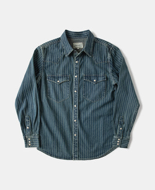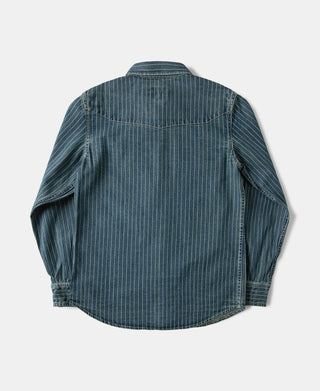 1950s Indigo Discharge-printed Wabash Stripe Western Shirt