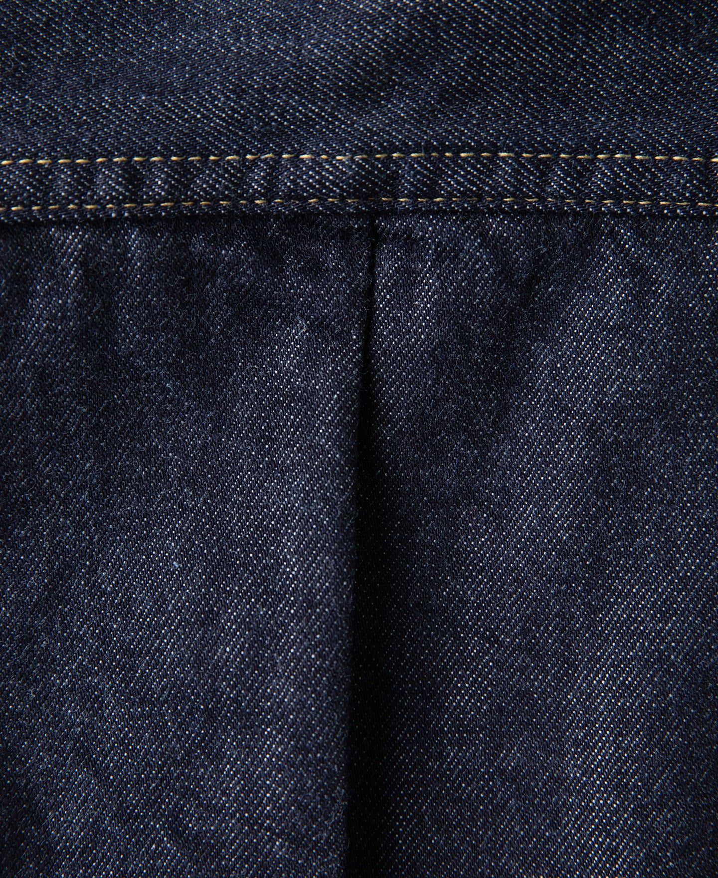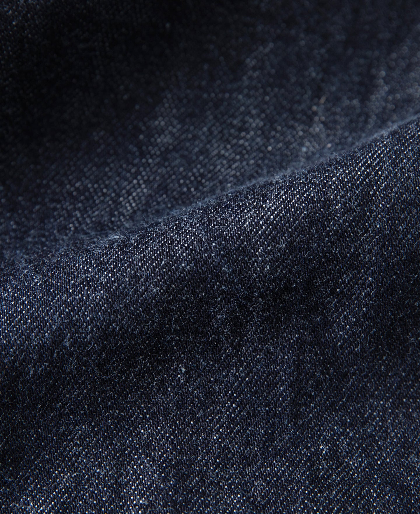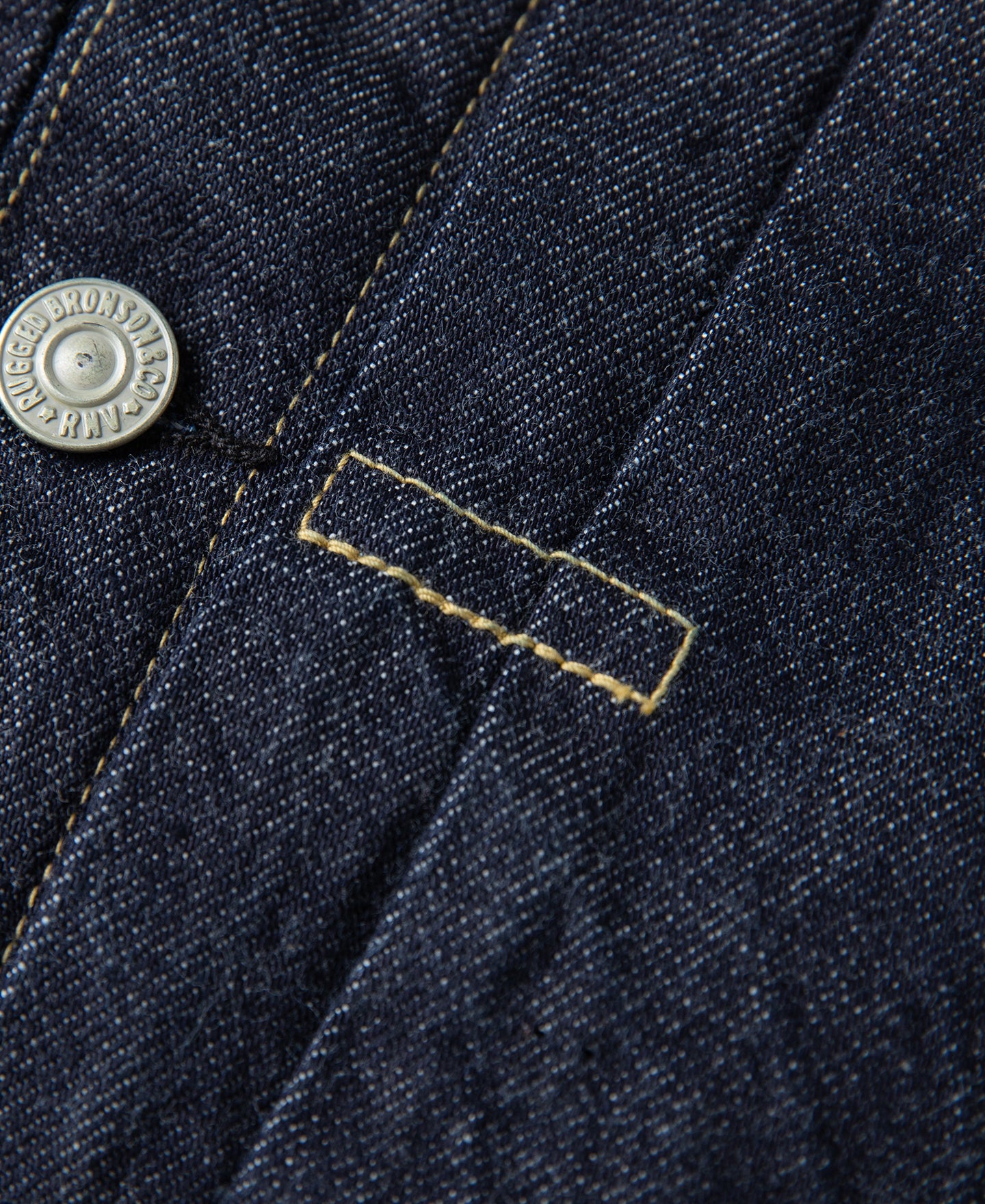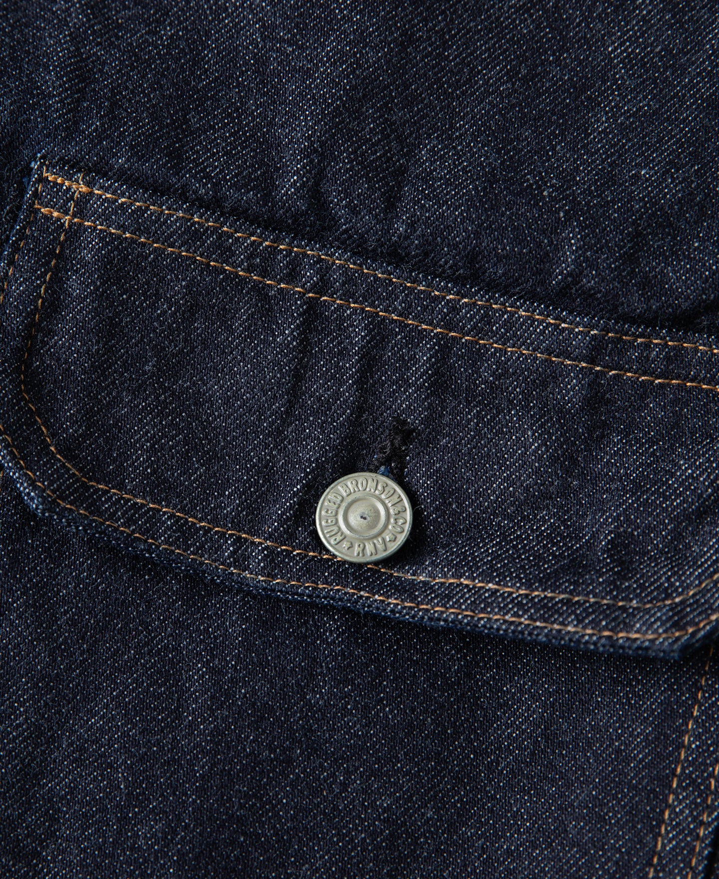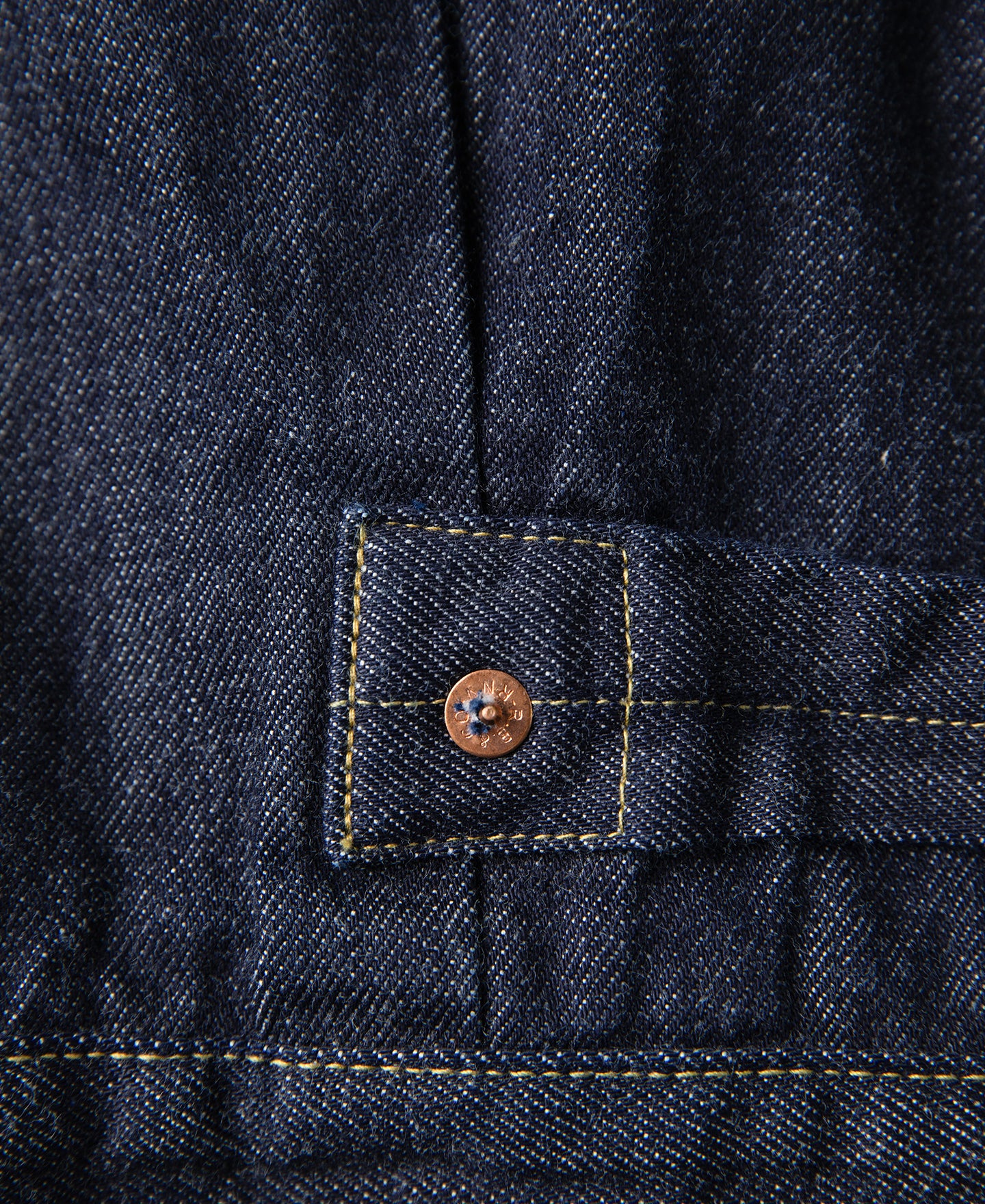Inspired by late-1940s denim jacket, after World War II when material restrictions were lifted. With wartime regulations gone, classic details returned—including the option to line jackets with wool blankets once again. It features accordion pleats aligned with the second front button, a hallmark of Type I jacket. At the back, the cinch buckle evolved from a prong style to a safer and more practical box-pressed type. Cut from 13.5 oz selvedge denim and fully lined with a blended wool blanket (50% wool, 35% polyester, 15% acrylic), the fabric provides a soft, warm, and wind-resistant feel. Stitched with Japanese cotton threads and finished with a garment wash, this piece combines authentic vintage character with everyday comfort and affordability.