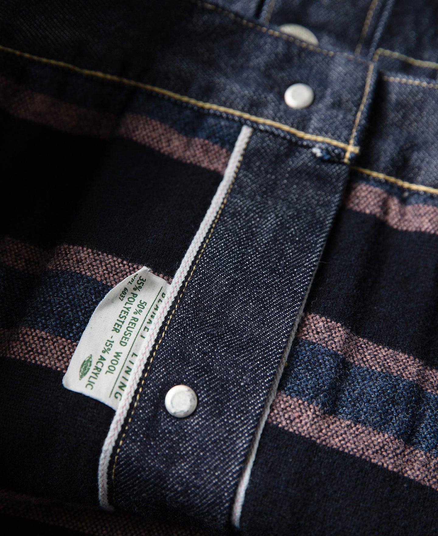 - 13.5 oz. Selvedge denim, 100% cotton. Inner: Blended wool blanket (50% wool, 35% polyester, 15% acrylic)