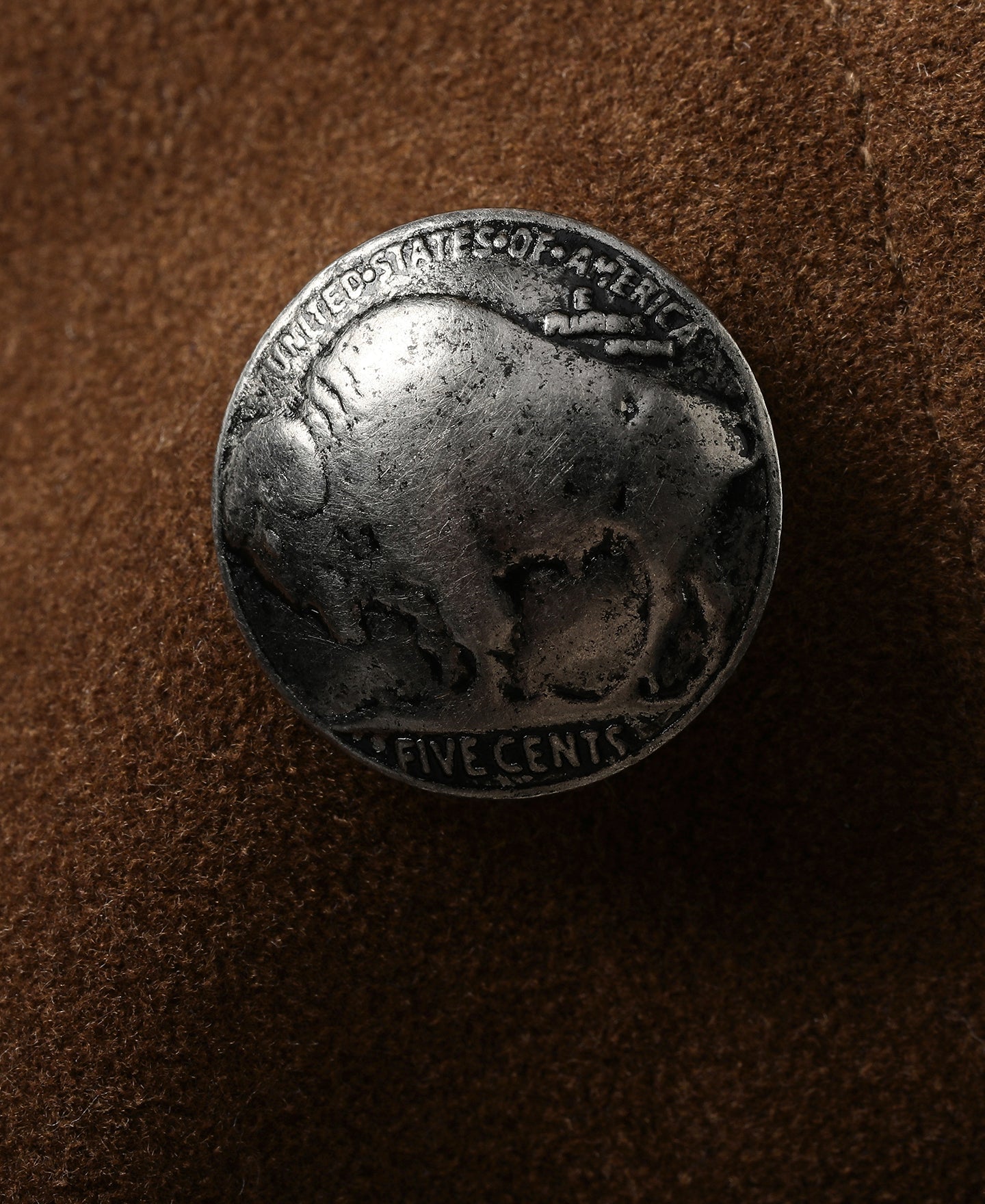 - Five-cent coin metal buttons, slightly larger than real coins for a bold accent