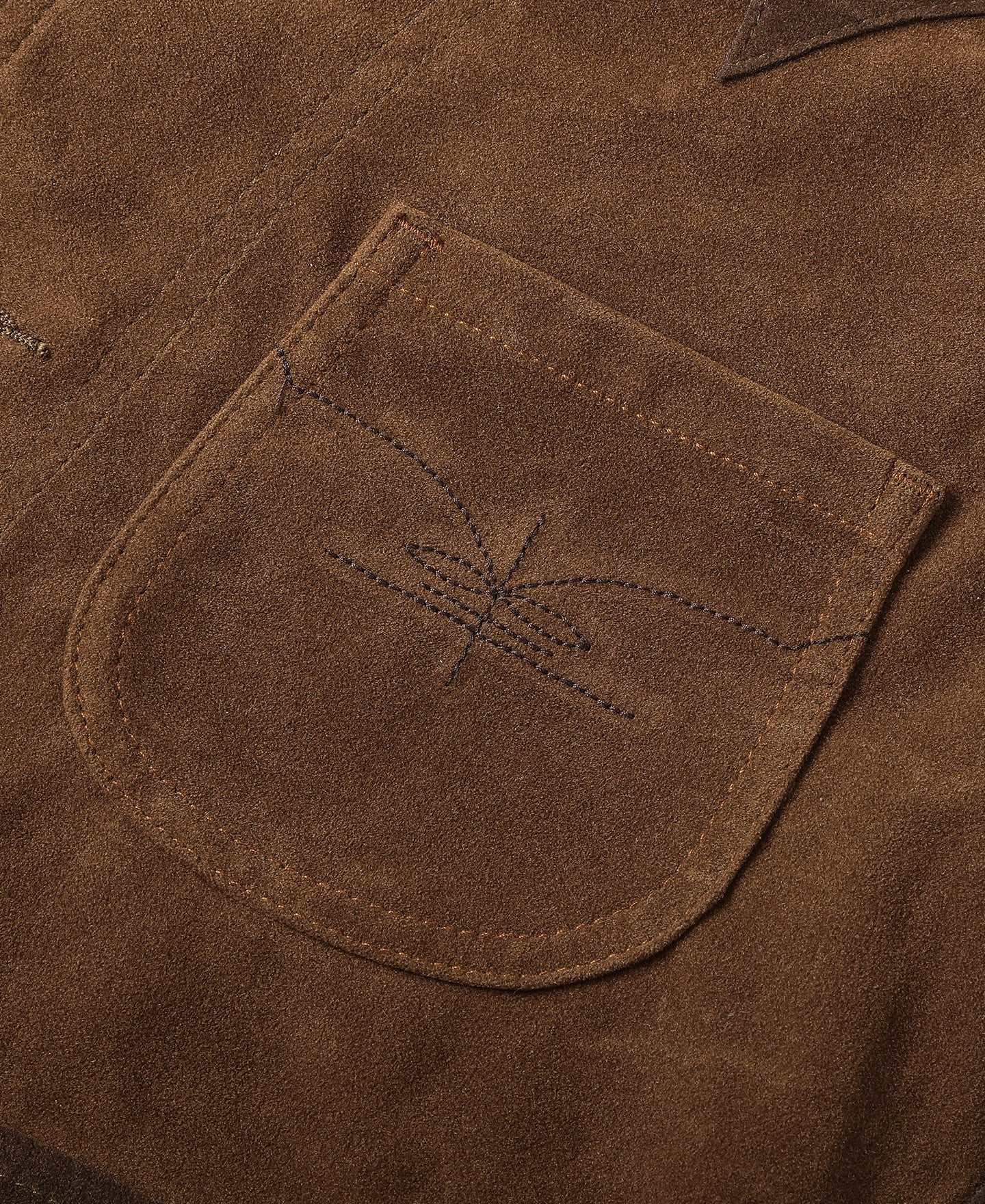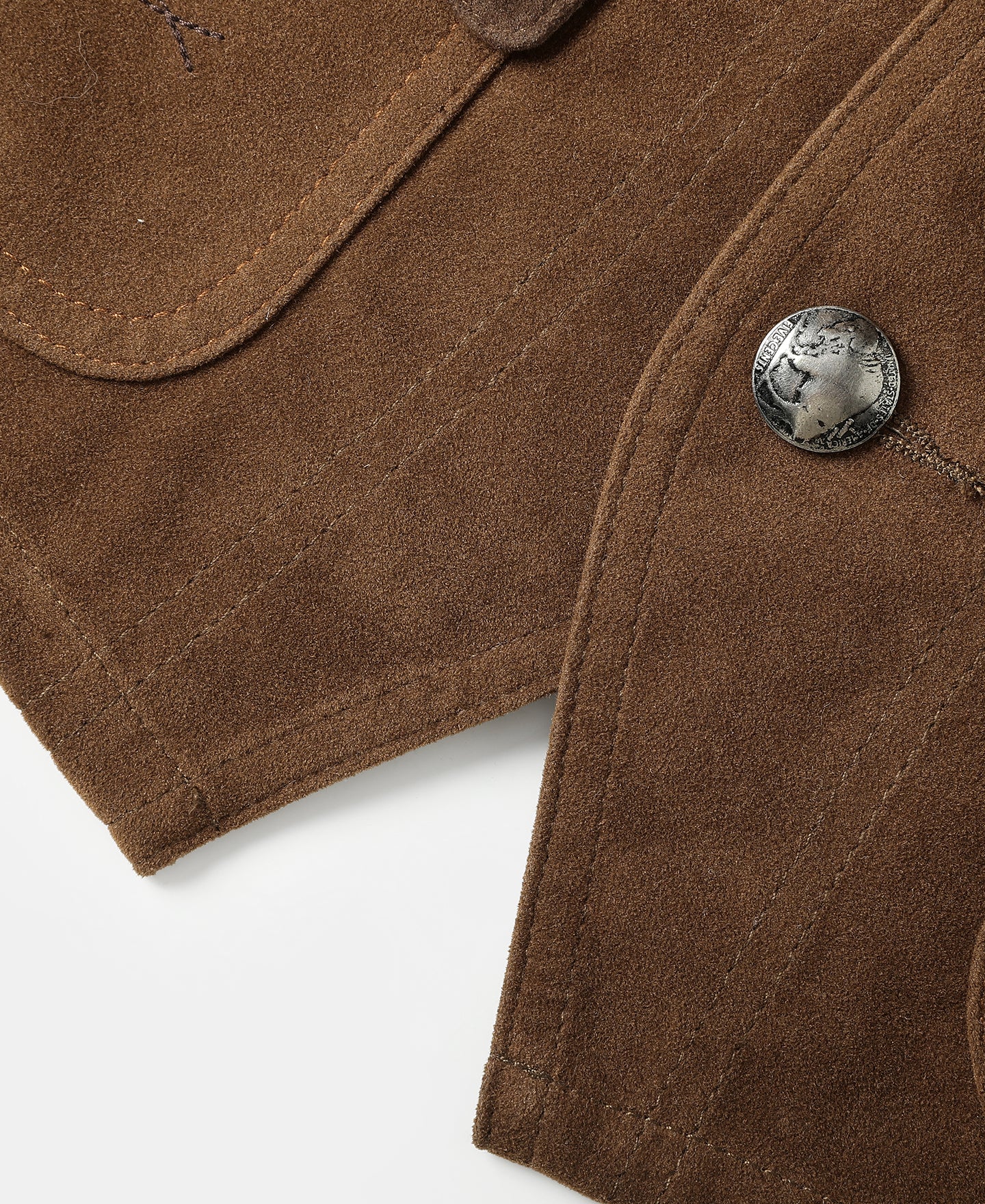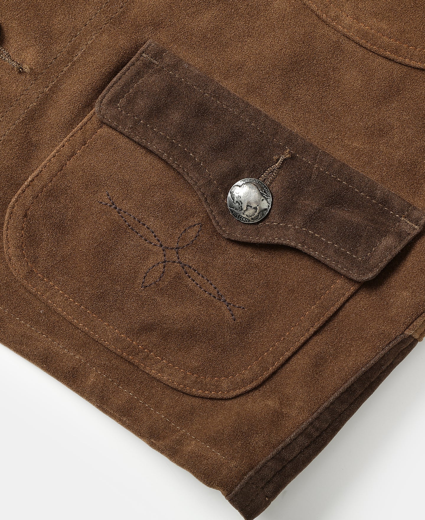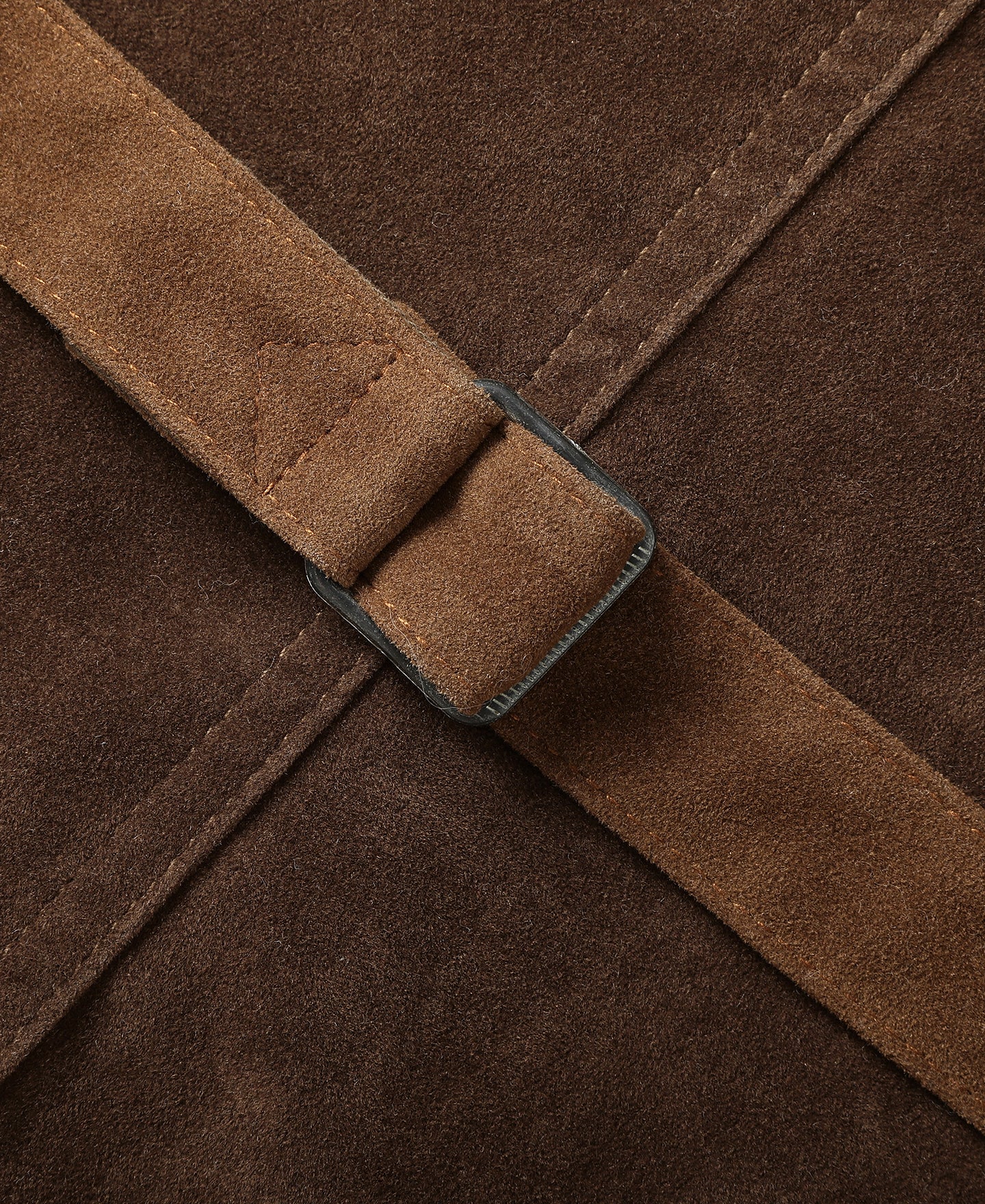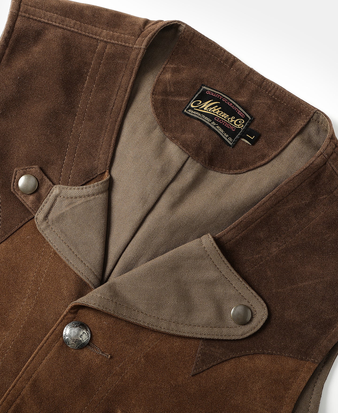 This vest combines the structure of early British hunting jackets with the flair of French waistcoats and rugged American workwear. The short, fitted cut and tonal paneling give it a sharp silhouette, while the mix of materials and handcrafted stitching add depth and authenticity.