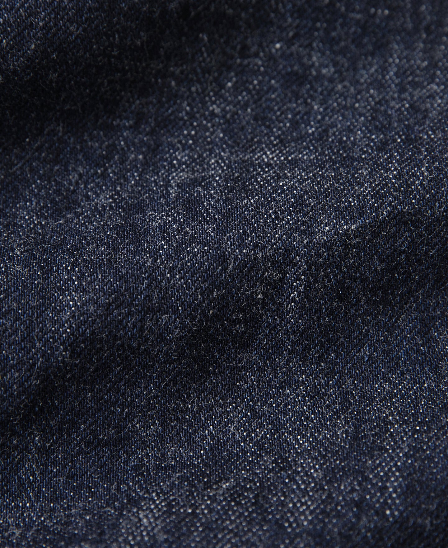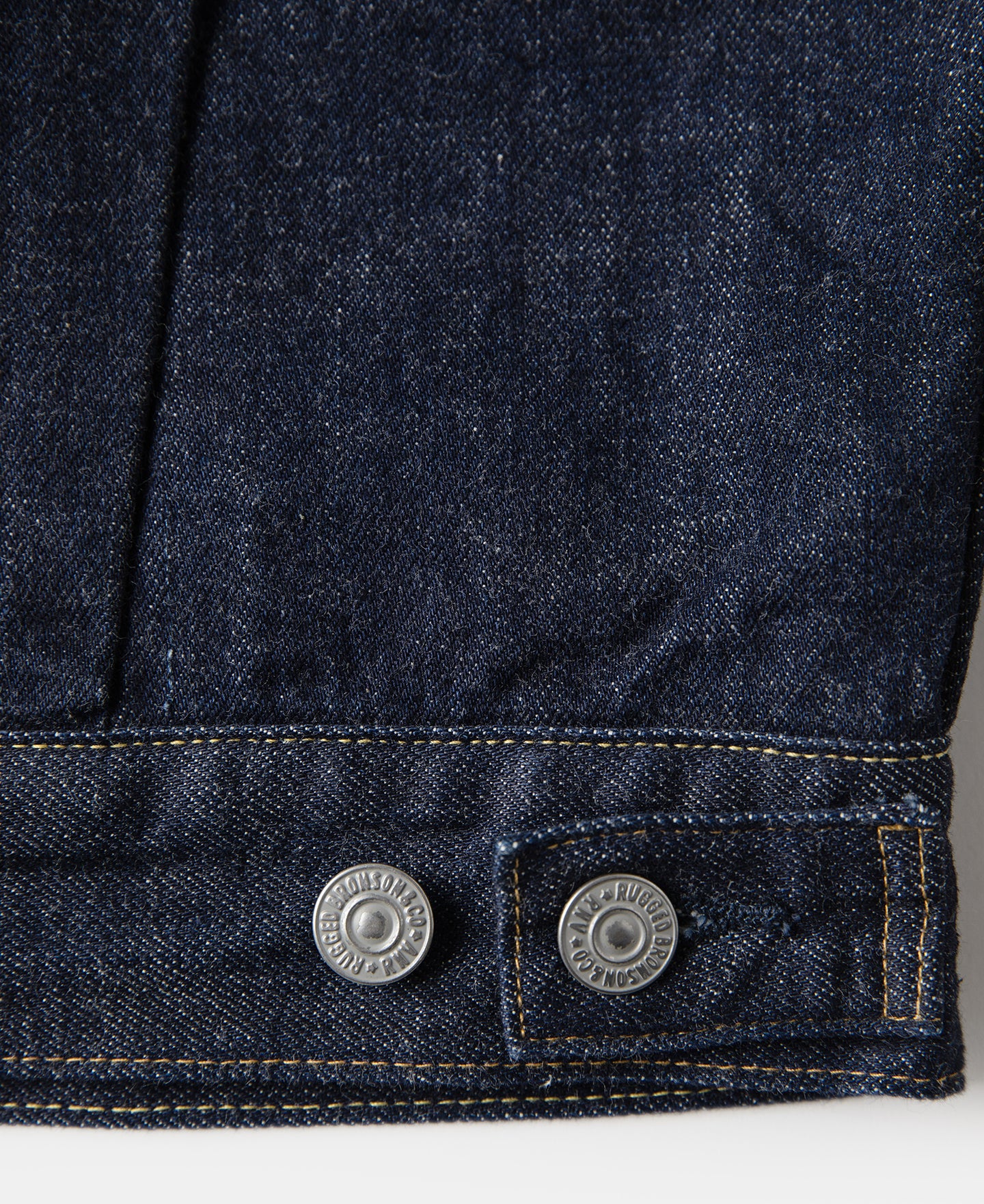 • Inspired by the 1950s second-generation denim jacket, this piece carries the defining traits of the era: a trimmer fit with narrower sleeves and a more tapered waistband. The back features an adjustable cinch in place of the earlier prong buckle, adding both function and period-correct detail. Cut from sturdy 14 oz selvedge denim and fully lined with a blended wool blanket (50% wool, 35% polyester, 15% acrylic), it offers warmth, structure, and durability.