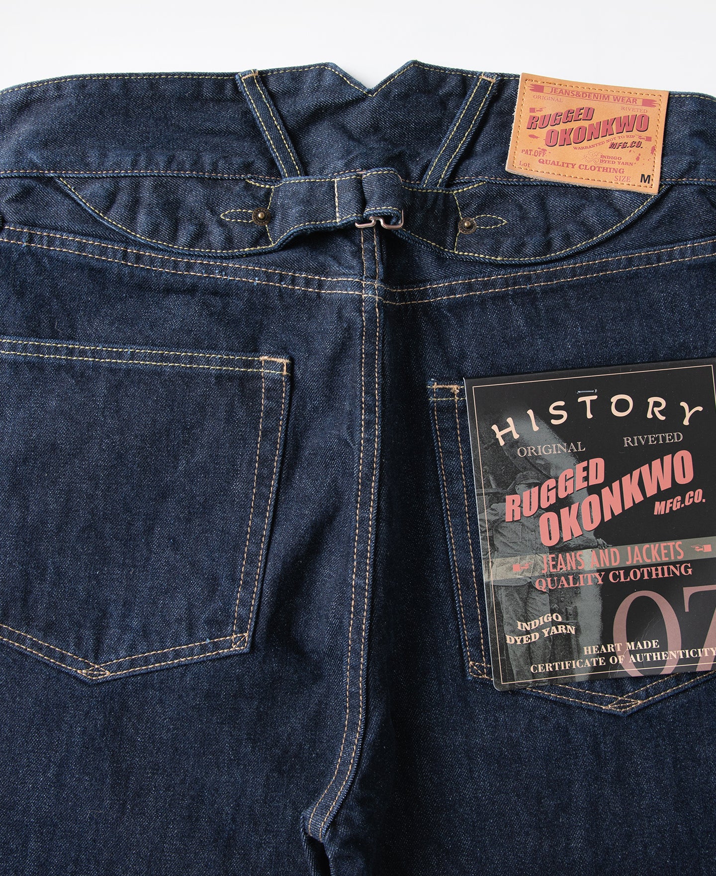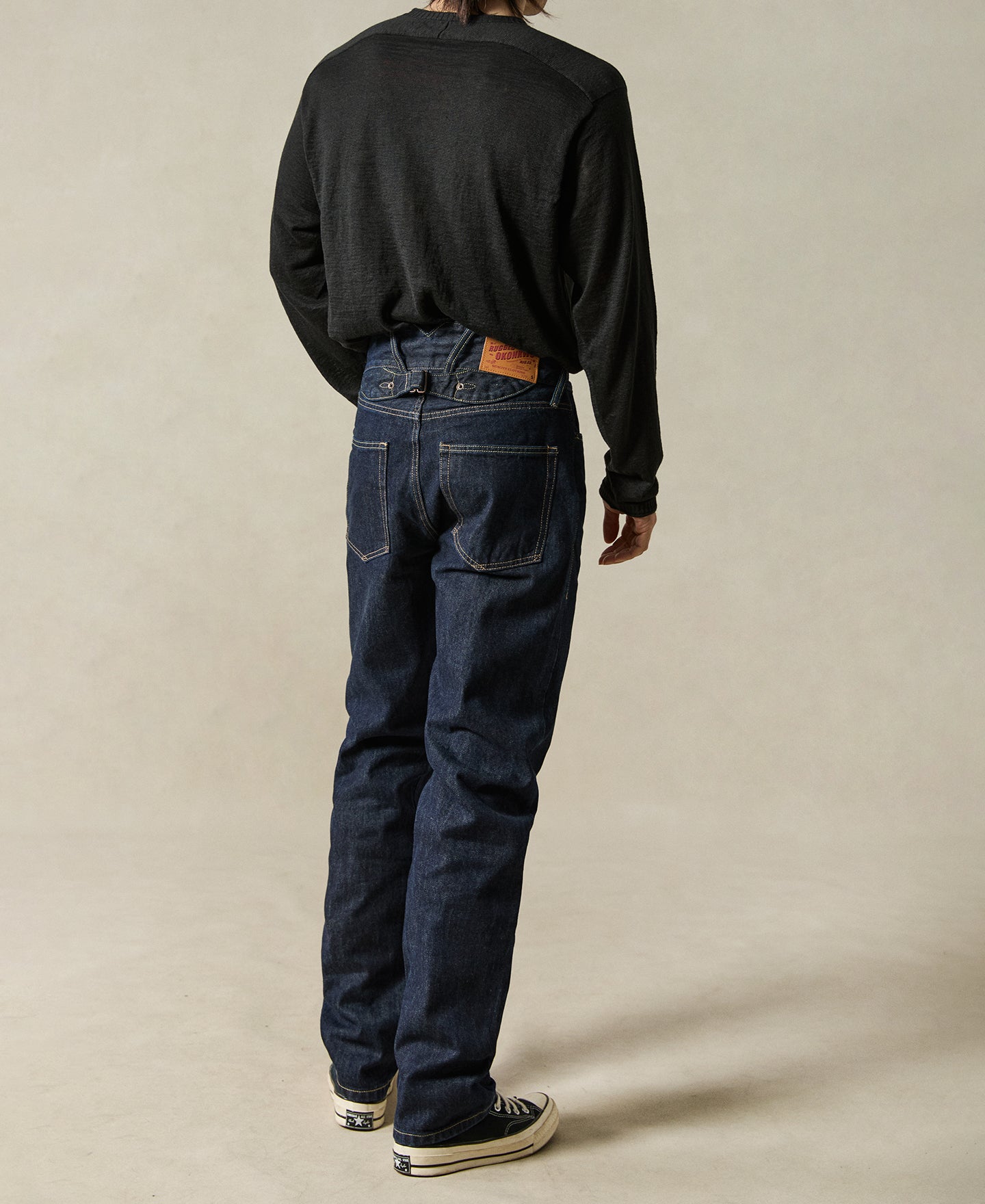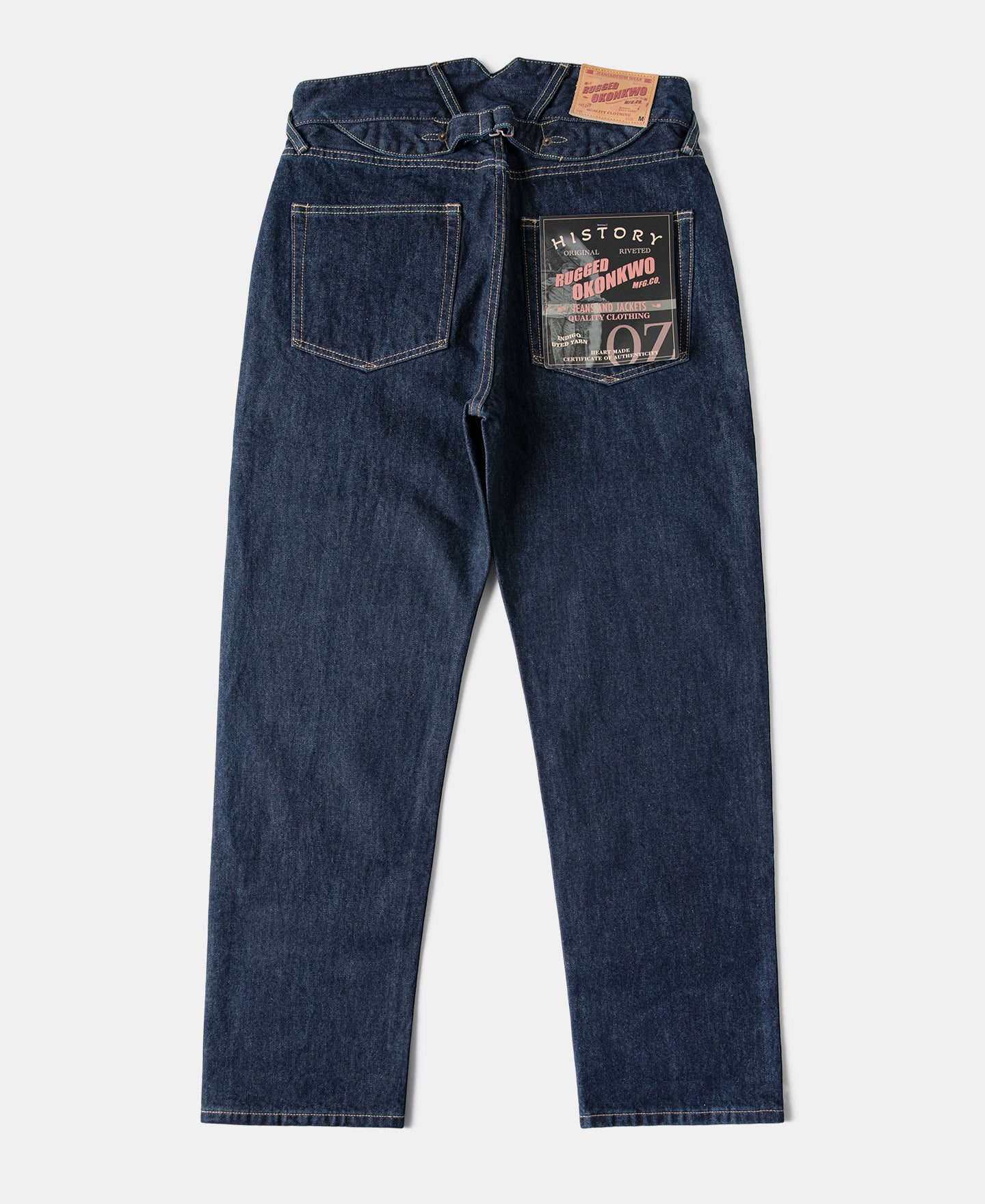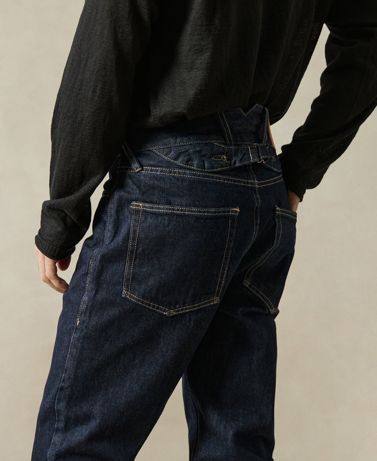 Crafted from raw 14.75oz selvedge denim that desizes to 15–15.5oz, these jeans are built for daily wear with clean lines and a relaxed silhouette. Simplified detailing keeps the look understated while preserving classic workwear durability.