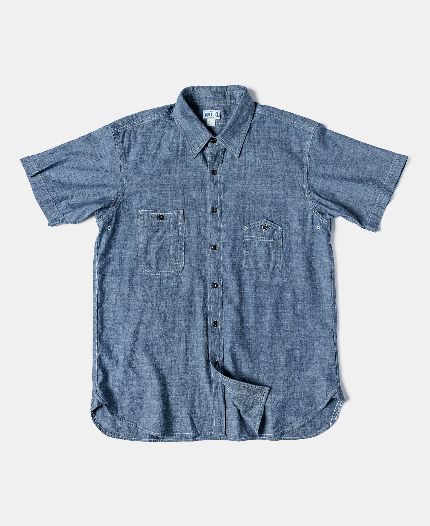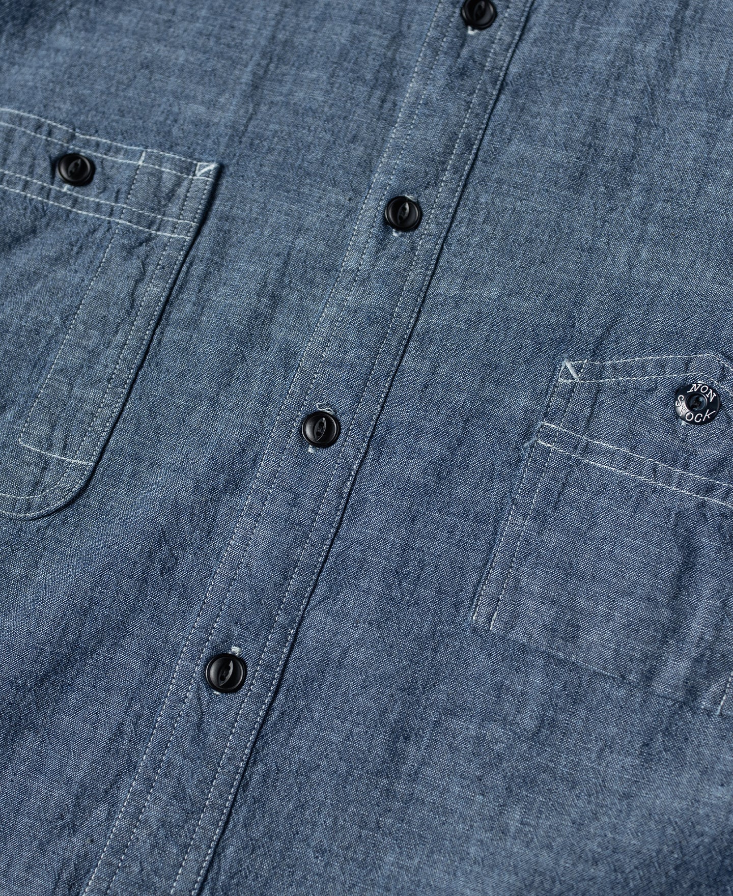 This work shirt is based on the 1943-1945 chambray shirt, made from 6.5 oz slub cotton for a textured, breathable feel.