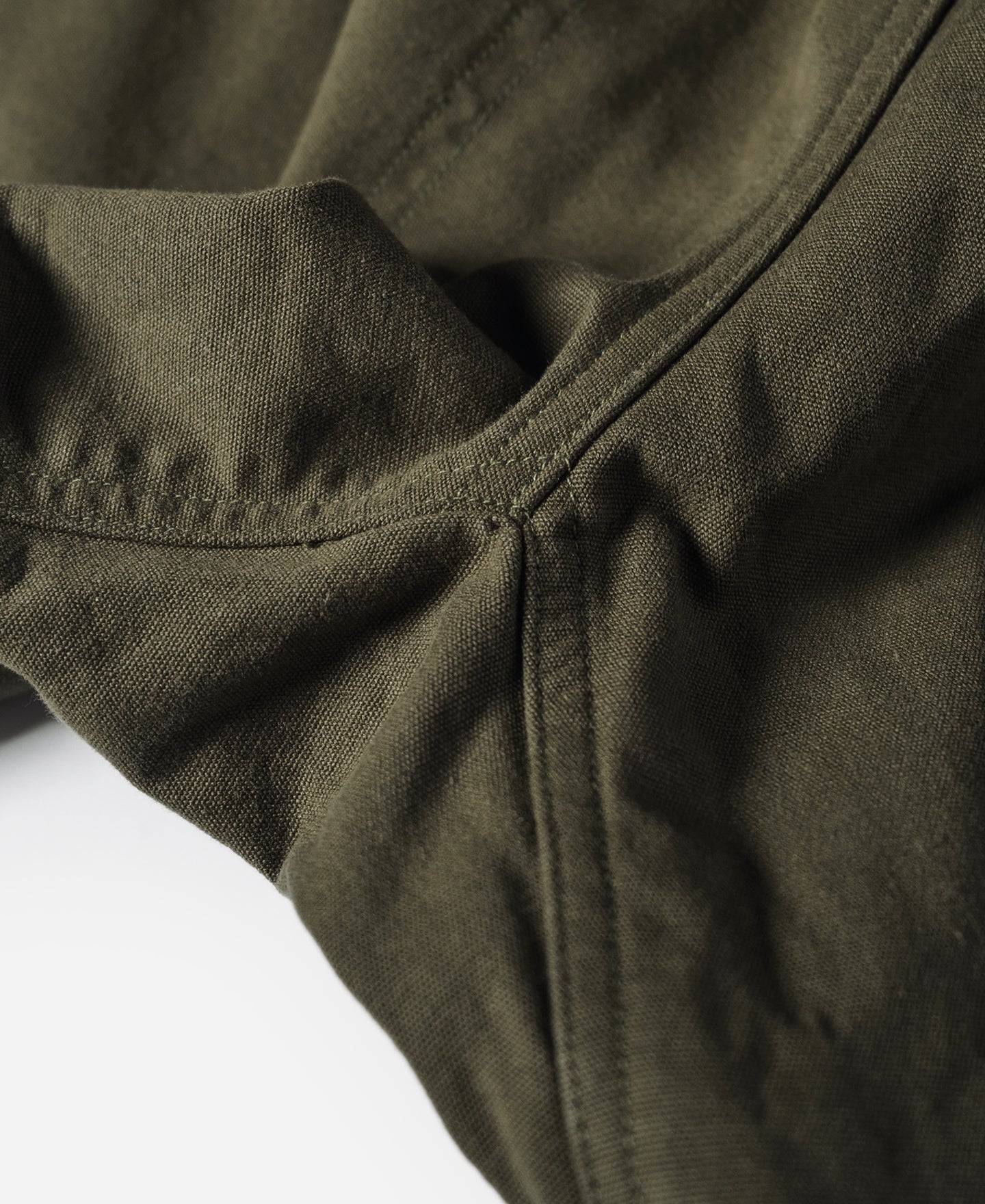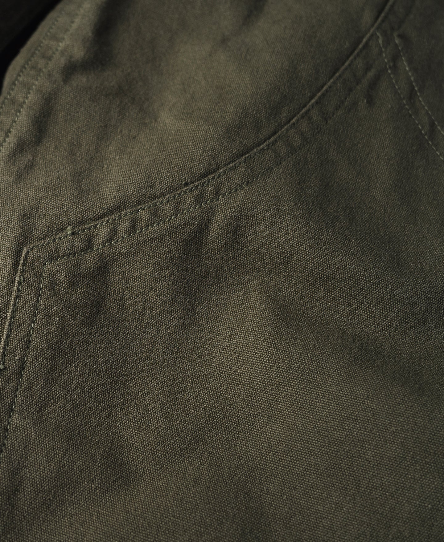 Made of 10 oz Oxford cotton canvas, two front patch pockets and double knee, two large back patch pockets, adjustable belt, Conmar anti-oxidant tin zipper. Loose silhouette, slightly narrowed legs, very practical and easy to wear.