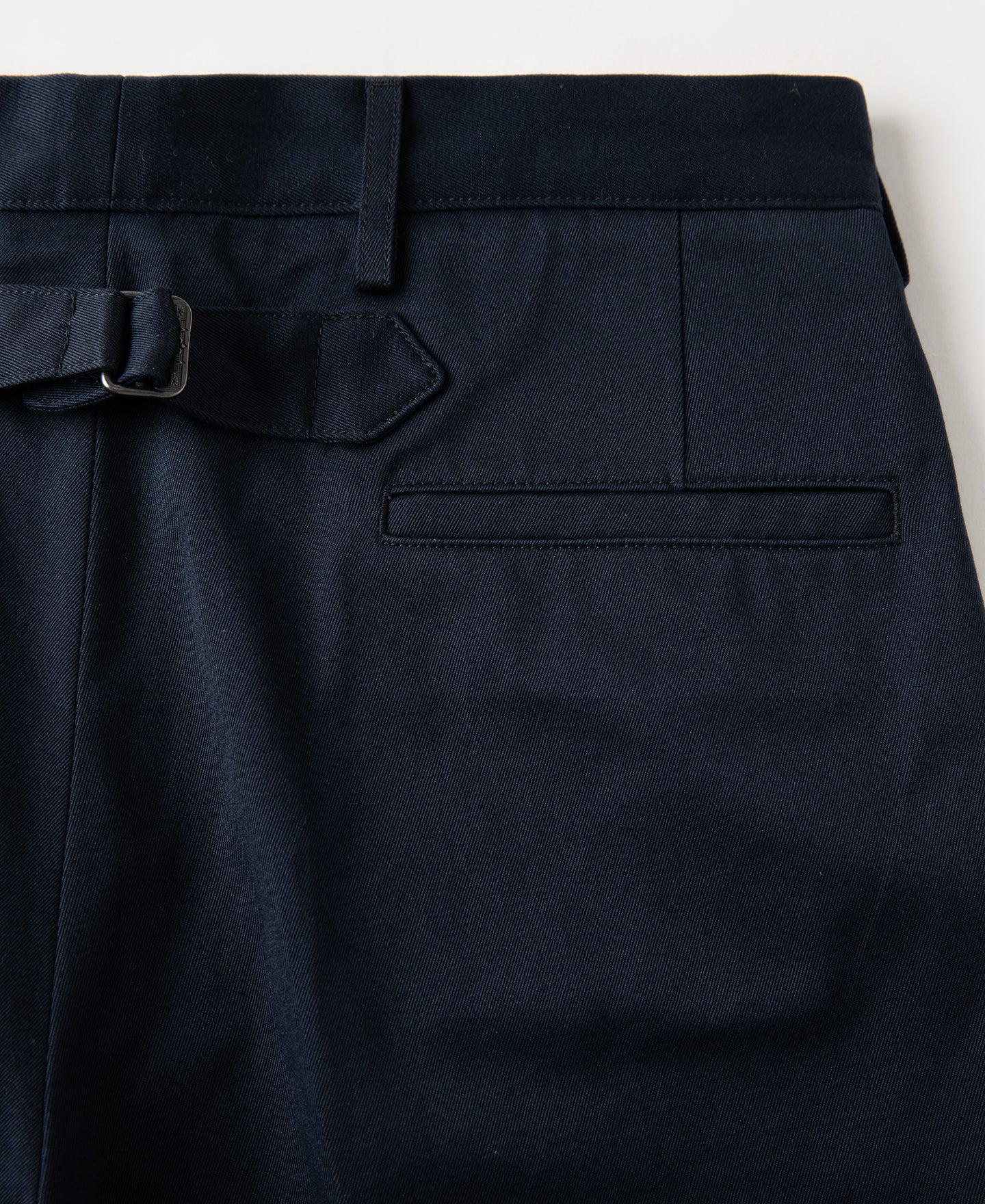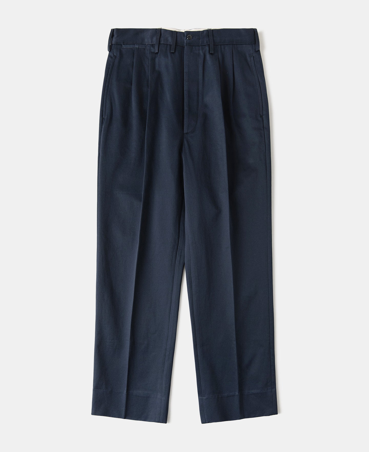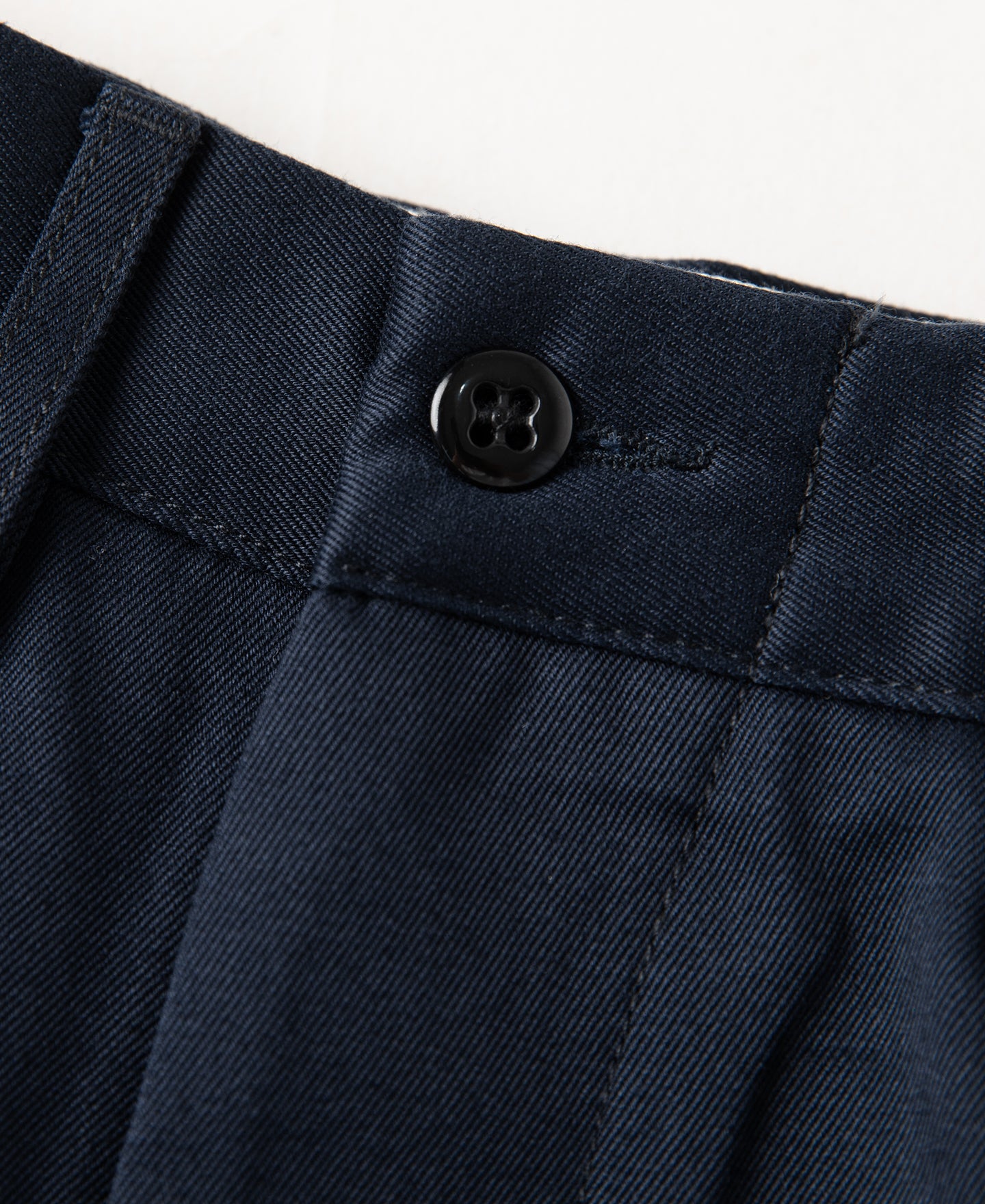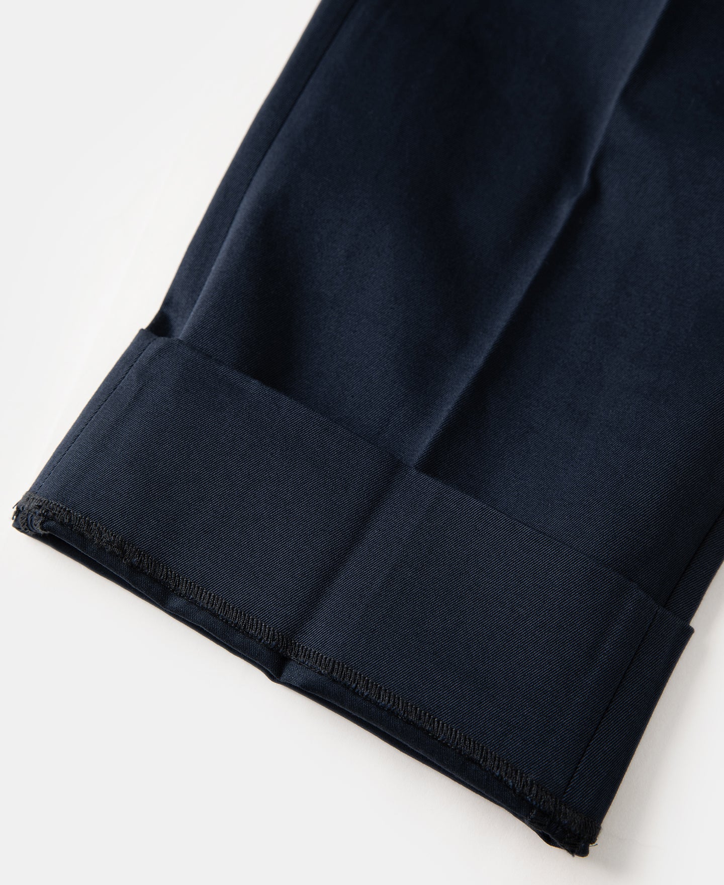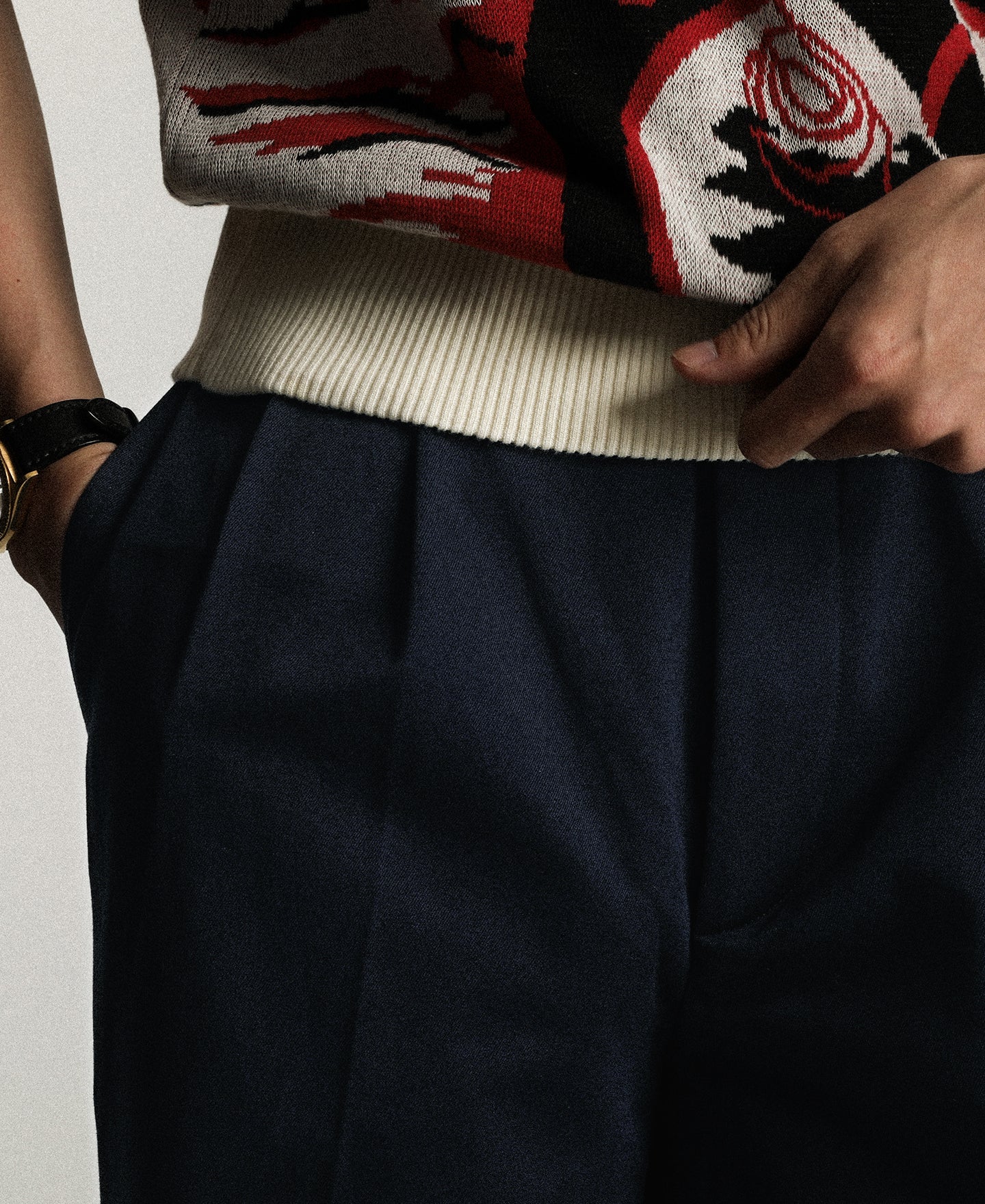 The loose legs and double pleats complement each other, giving the trousers a strong sense of dimension. It pairs perfectly with knitwear, short sleeves, and shirts.