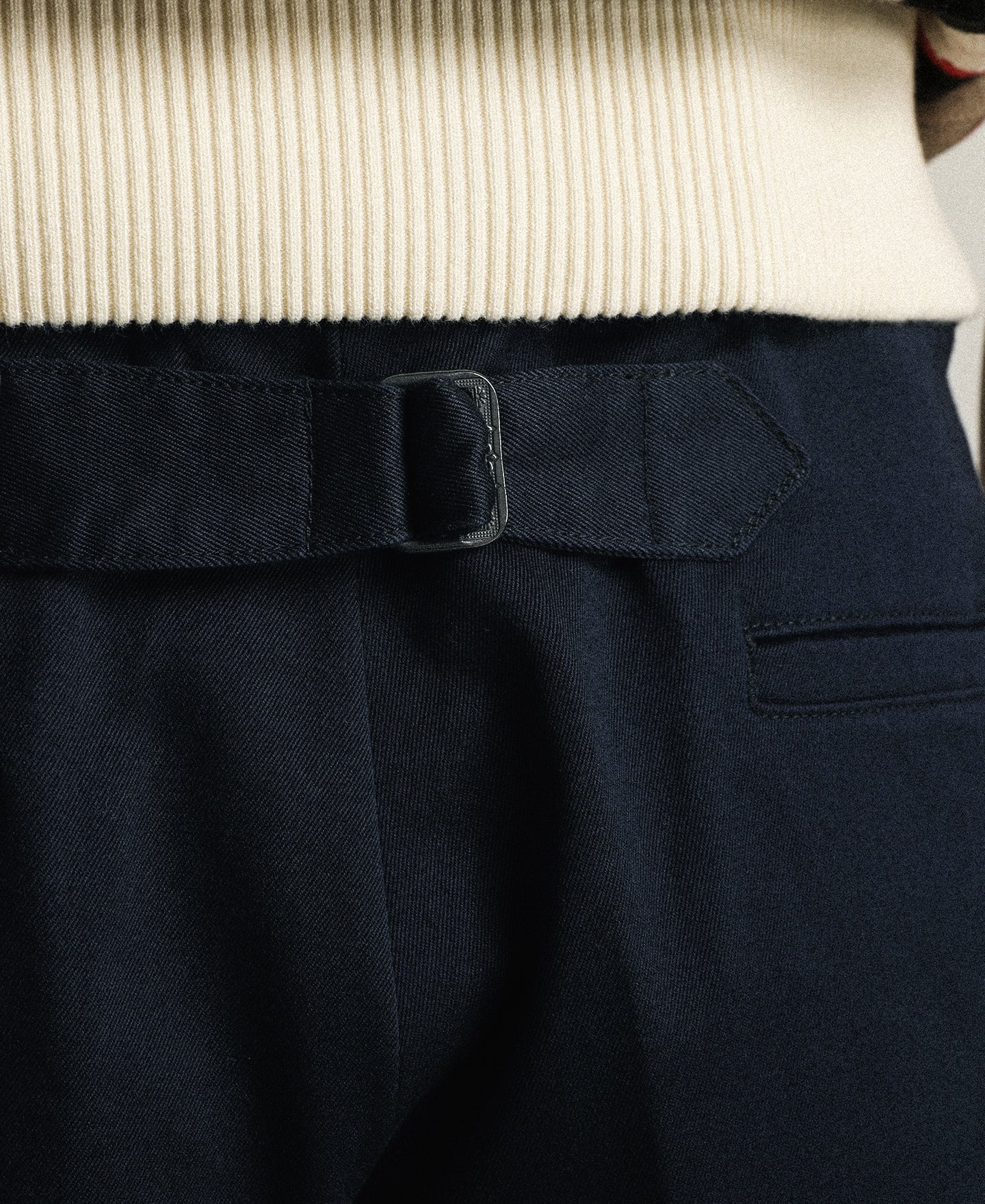 This is a pair of double - pleated trousers, a style that was prevalent in Europe and the US back in the 1940s. The relatively outward - positioned pleats lend a powerful vibe to the lower - body silhouette. Notably, there’s a signature detail of that era at the back waist - the Paris buckle engraved with lilies. The loose legs is a 1940s hallmark, it not only boosts comfort but also exudes elegance and poise through its relaxed cut.