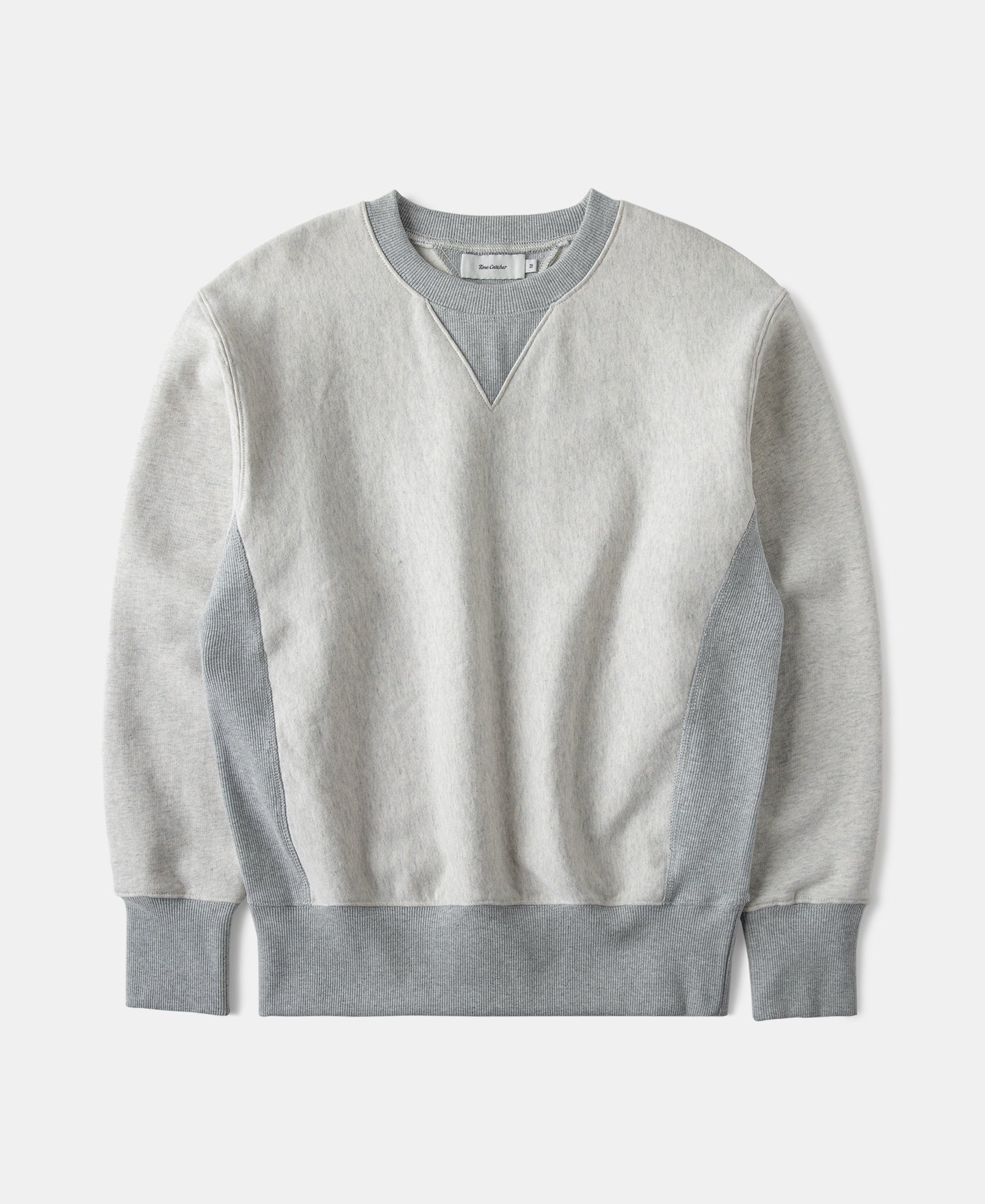 The reverse-weave construction, ribbed side panels, and reinforced double V-rib inserts at the collar highlight its vintage roots and functional design.