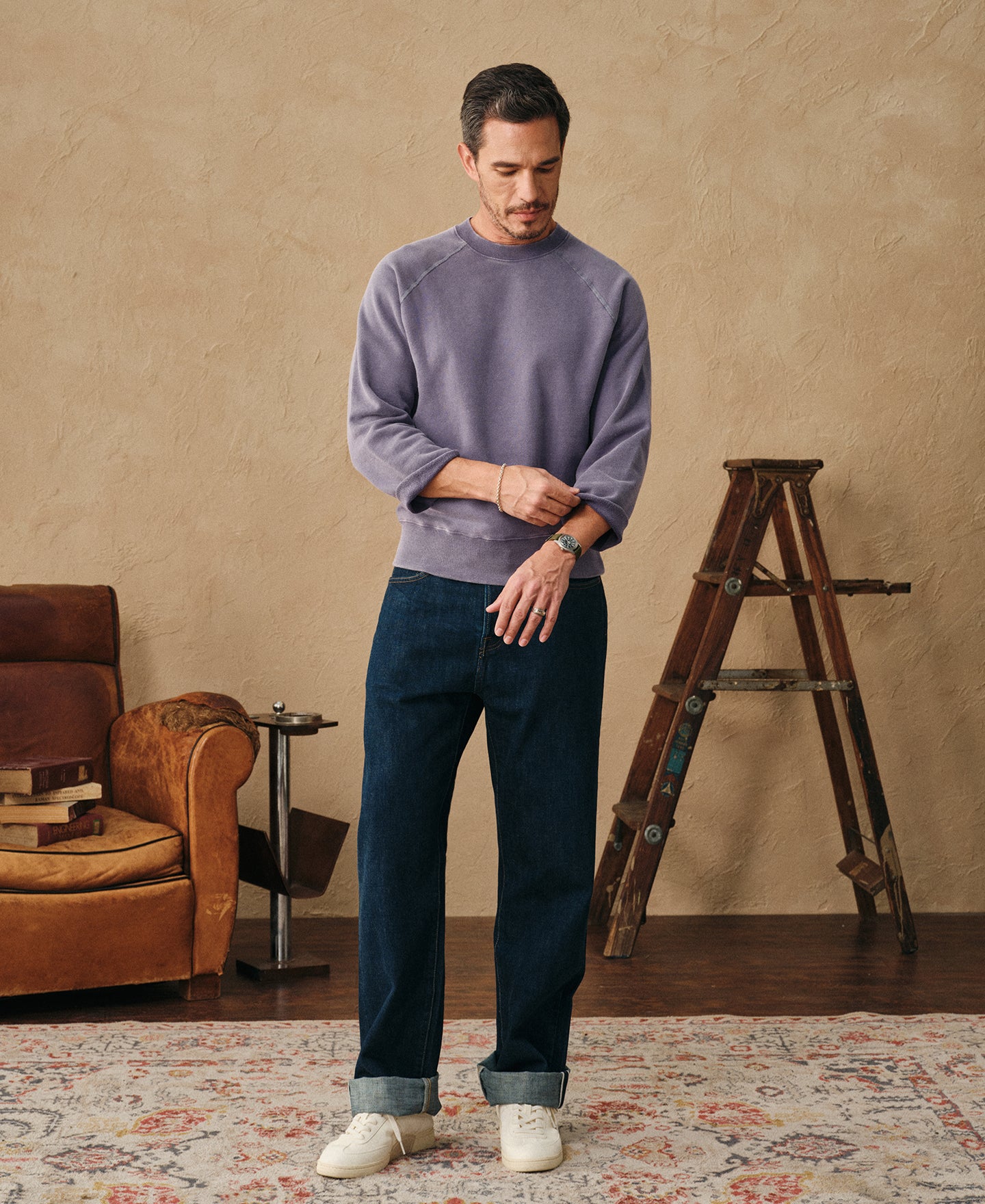 Inspired by the iconic raglan sleeve sweatshirt in the 1963 film The Great Escape. Embraced by 1960s campuses, this style became a sartorial emblem of rugged athleticism – collegiate athletes who cropped the sleeves to show sportsmanship.