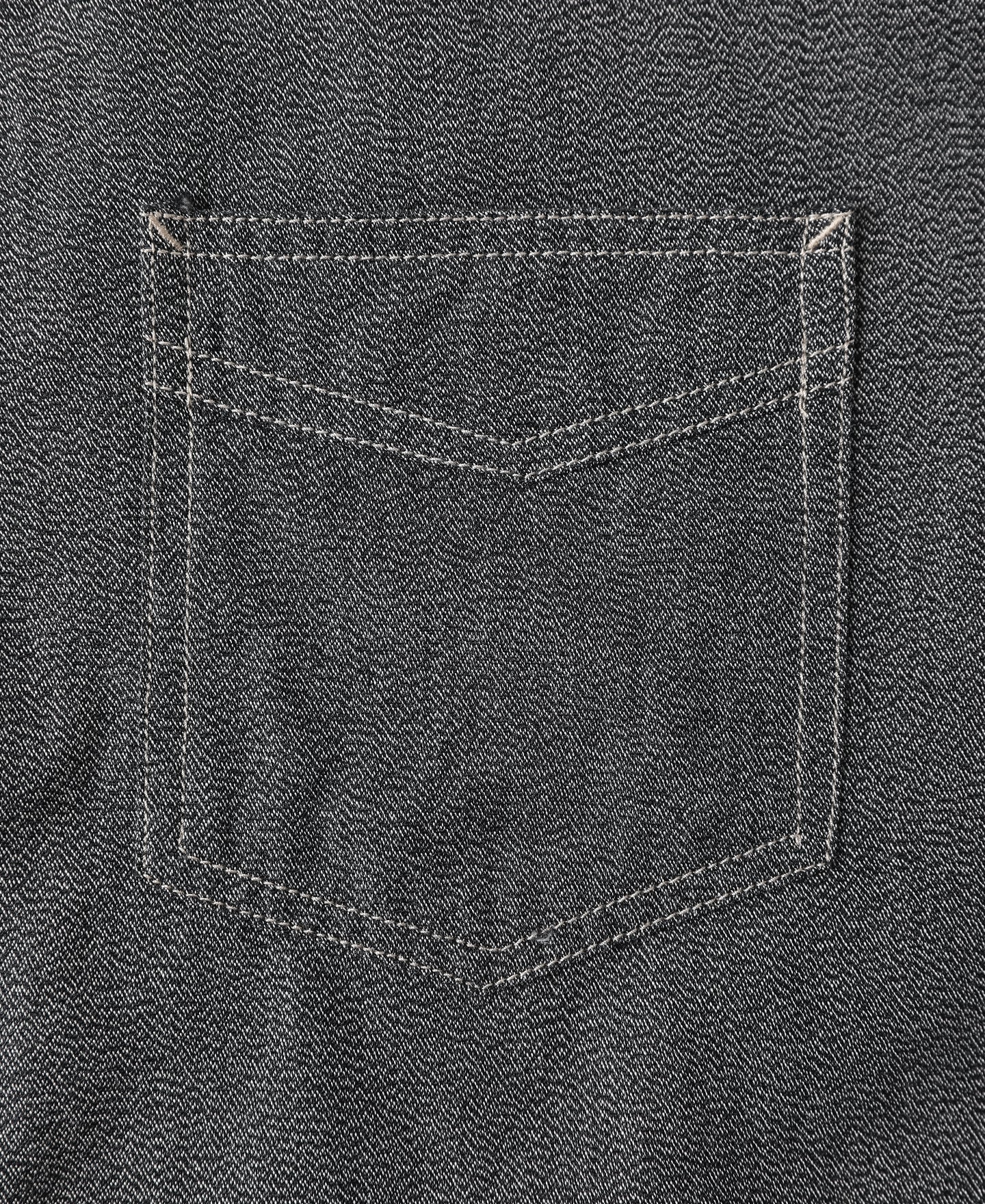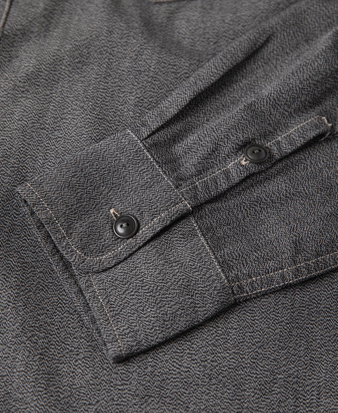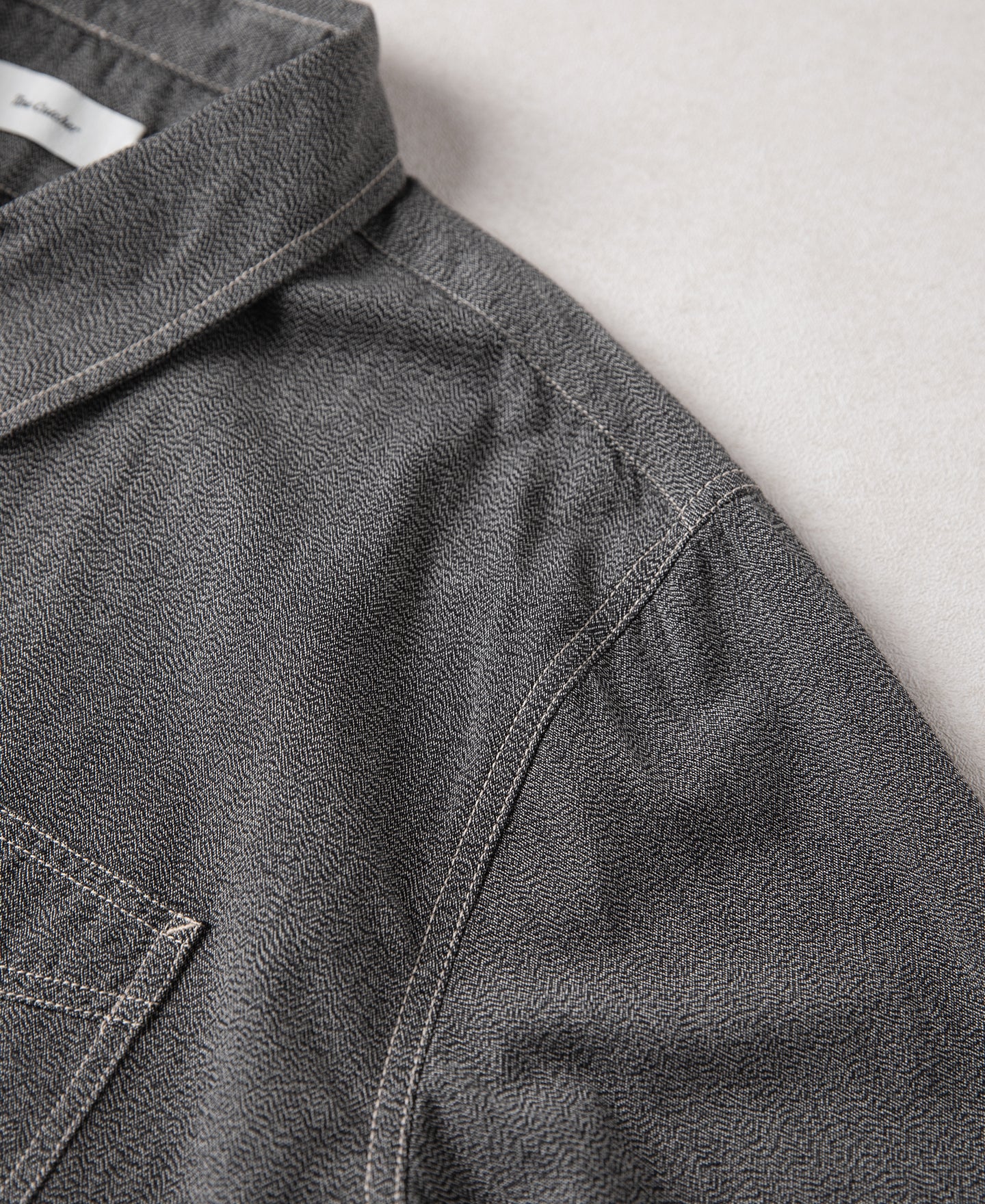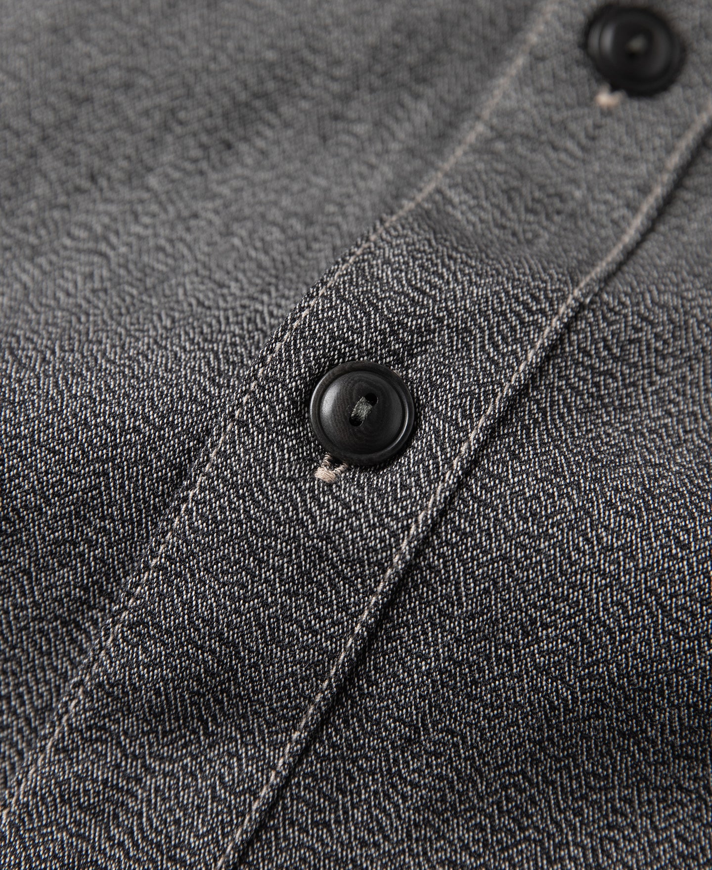 This shirt is inspired by work shirts from the 1930s, cotton jaspé cloth, the jaspé technique combines two separately dyed cotton yarns to create a rustic two-tone effect. Retro style work shirt detail, khaki stitching structure, and Authentic chain stitching structure at the side seams ensure durable construction. A pocket on the left breast makes it more retro after a long wear.