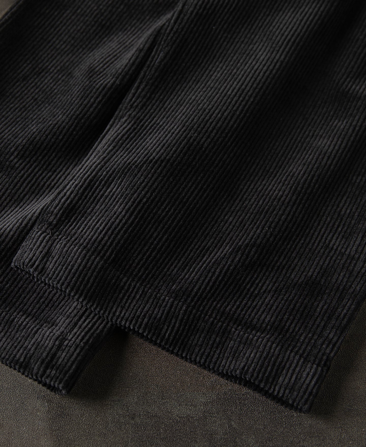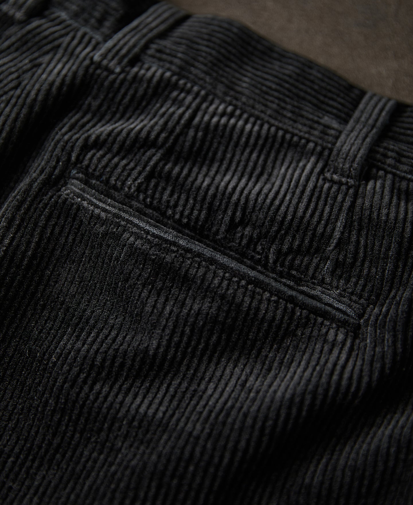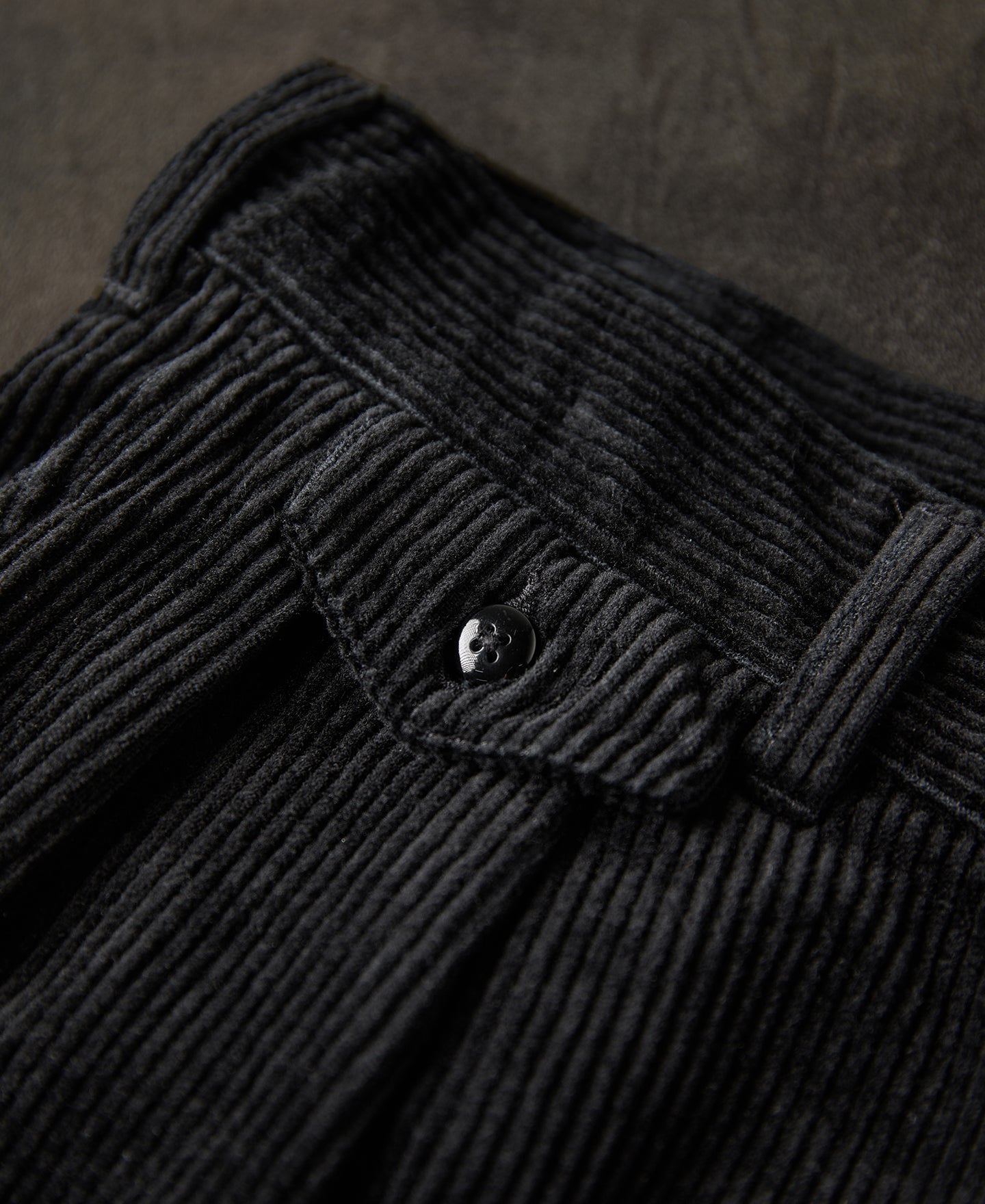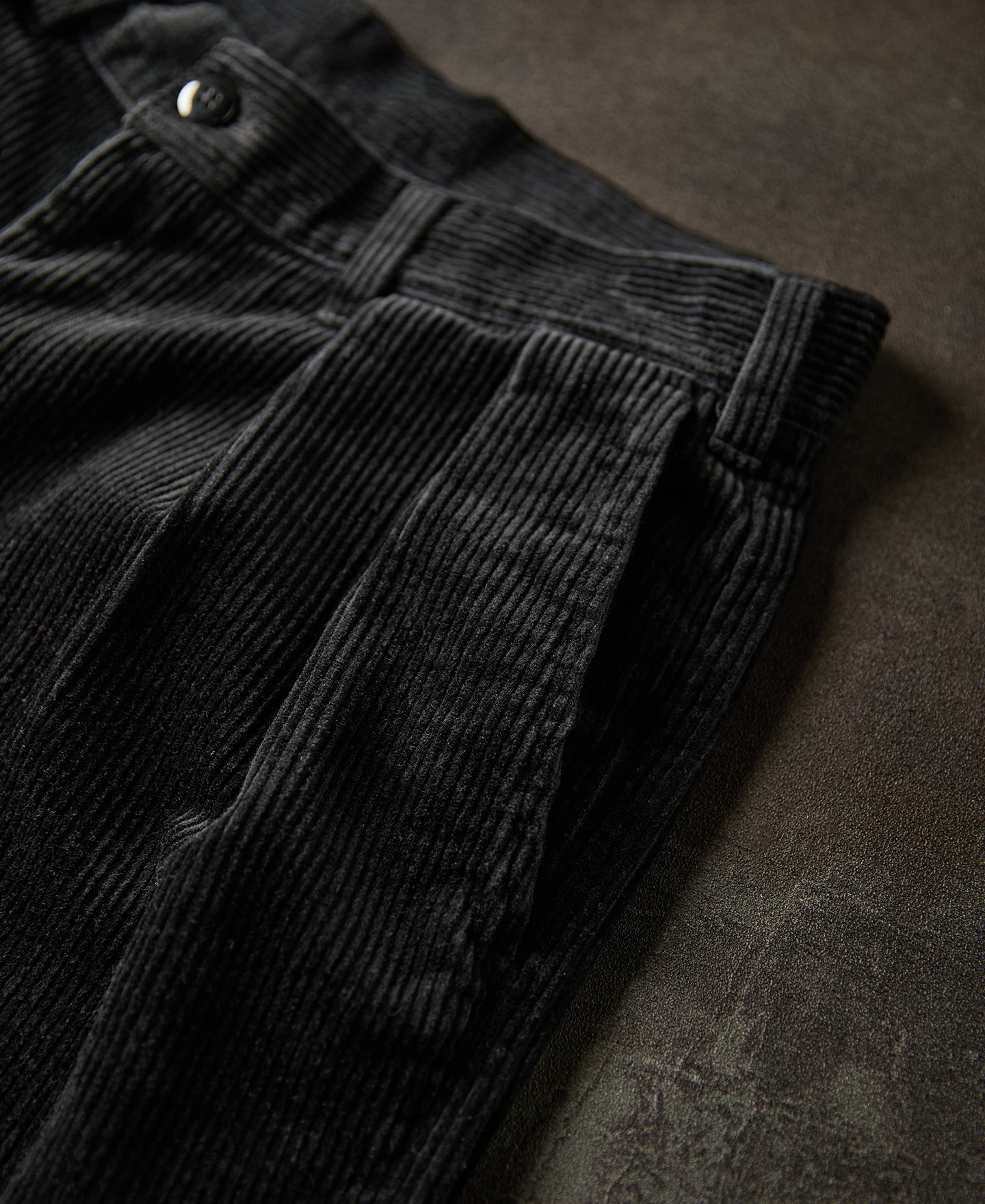 Inspired by 1960s European work trousers, this pair features a double-pleated design with a relaxed wide-leg and mid-high rise fit. Slightly refined for a more modern silhouette and everyday versatility, the trousers are crafted from heavyweight cotton corduroy. Garment-washed for a soft hand and naturally vintage appearance, they combine old-world charm with contemporary wearability.