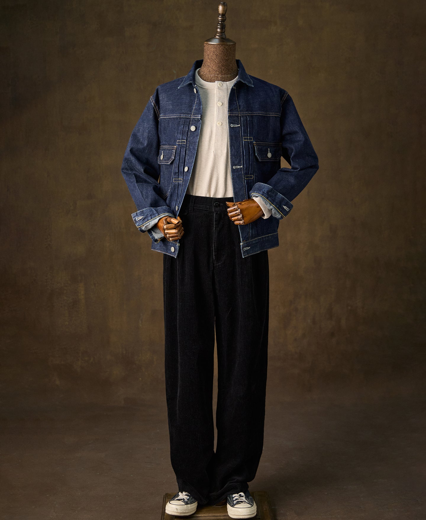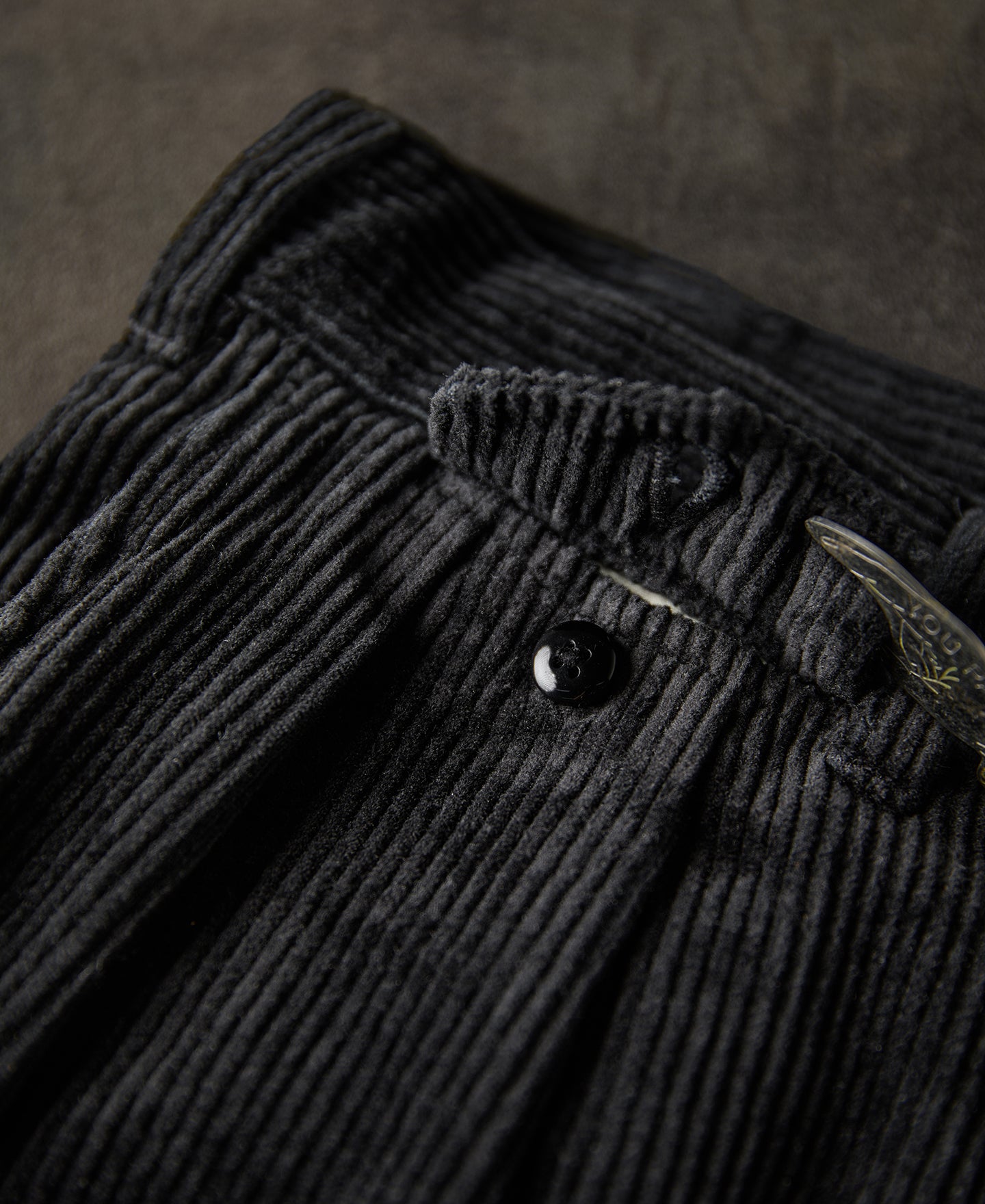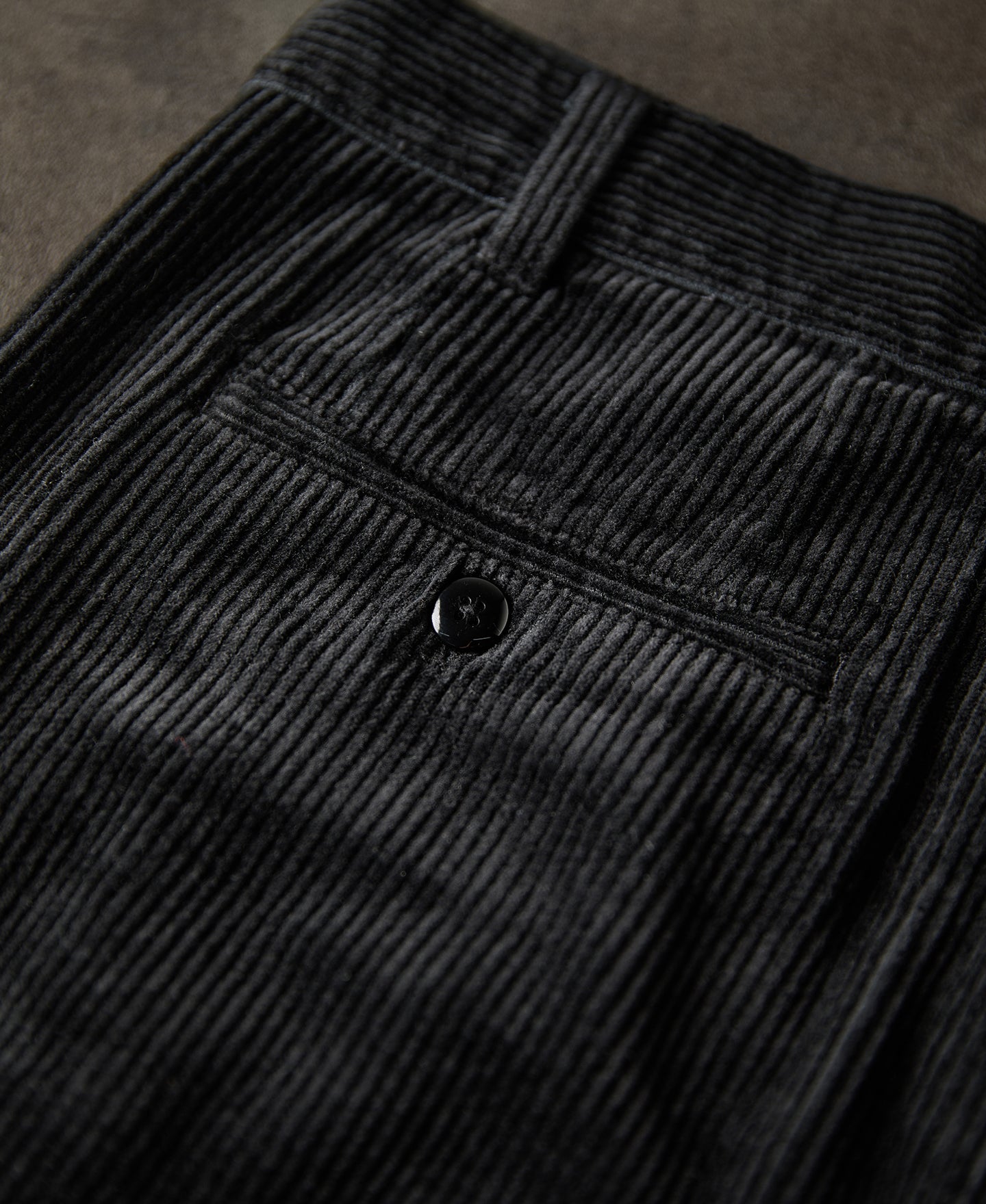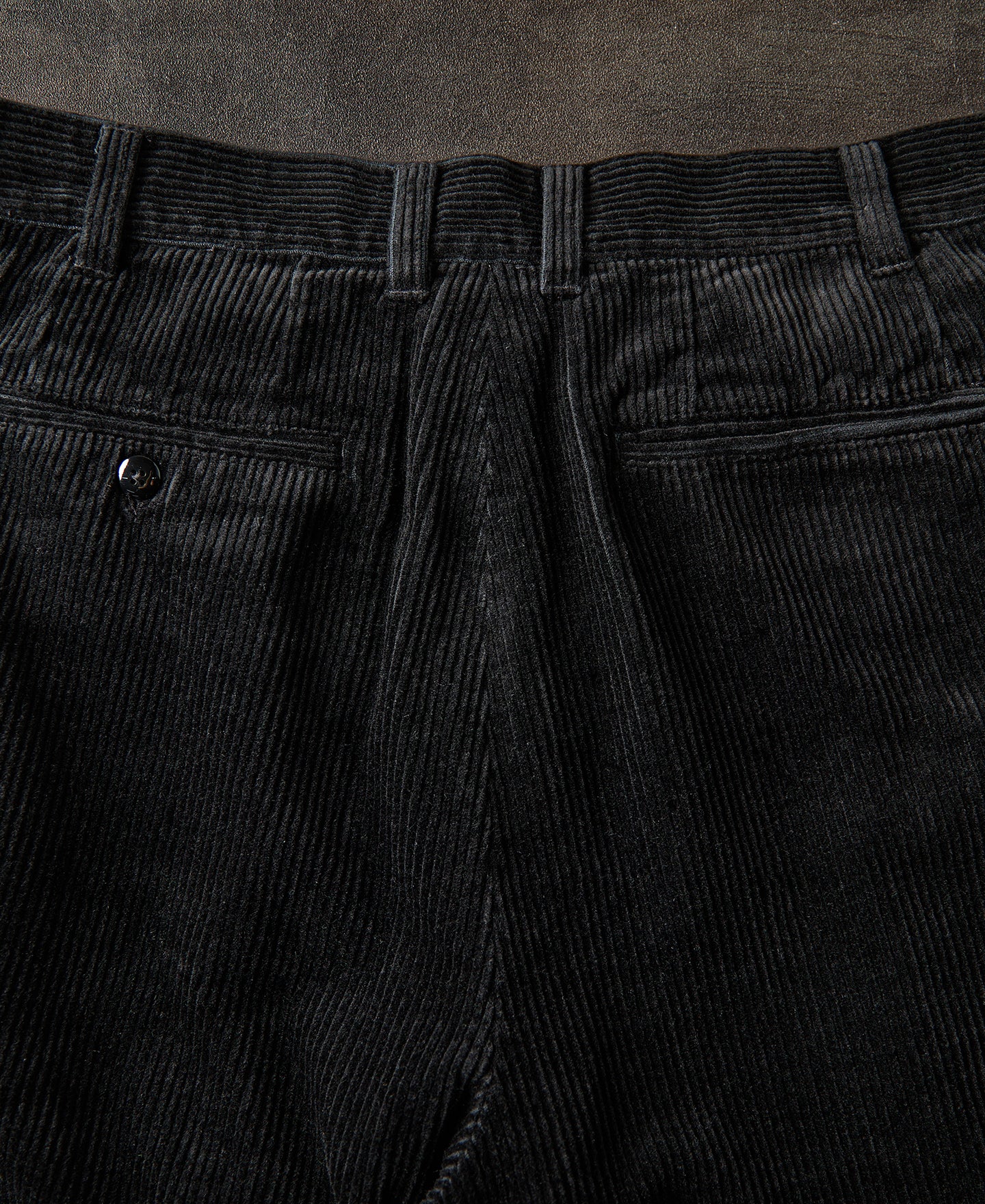 Inspired by 1960s European work trousers, this pair features a double-pleated design with a relaxed wide-leg and mid-high rise fit. Slightly refined for a more modern silhouette and everyday versatility, the trousers are crafted from heavyweight cotton corduroy. Garment-washed for a soft hand and naturally vintage appearance, they combine old-world charm with contemporary wearability.