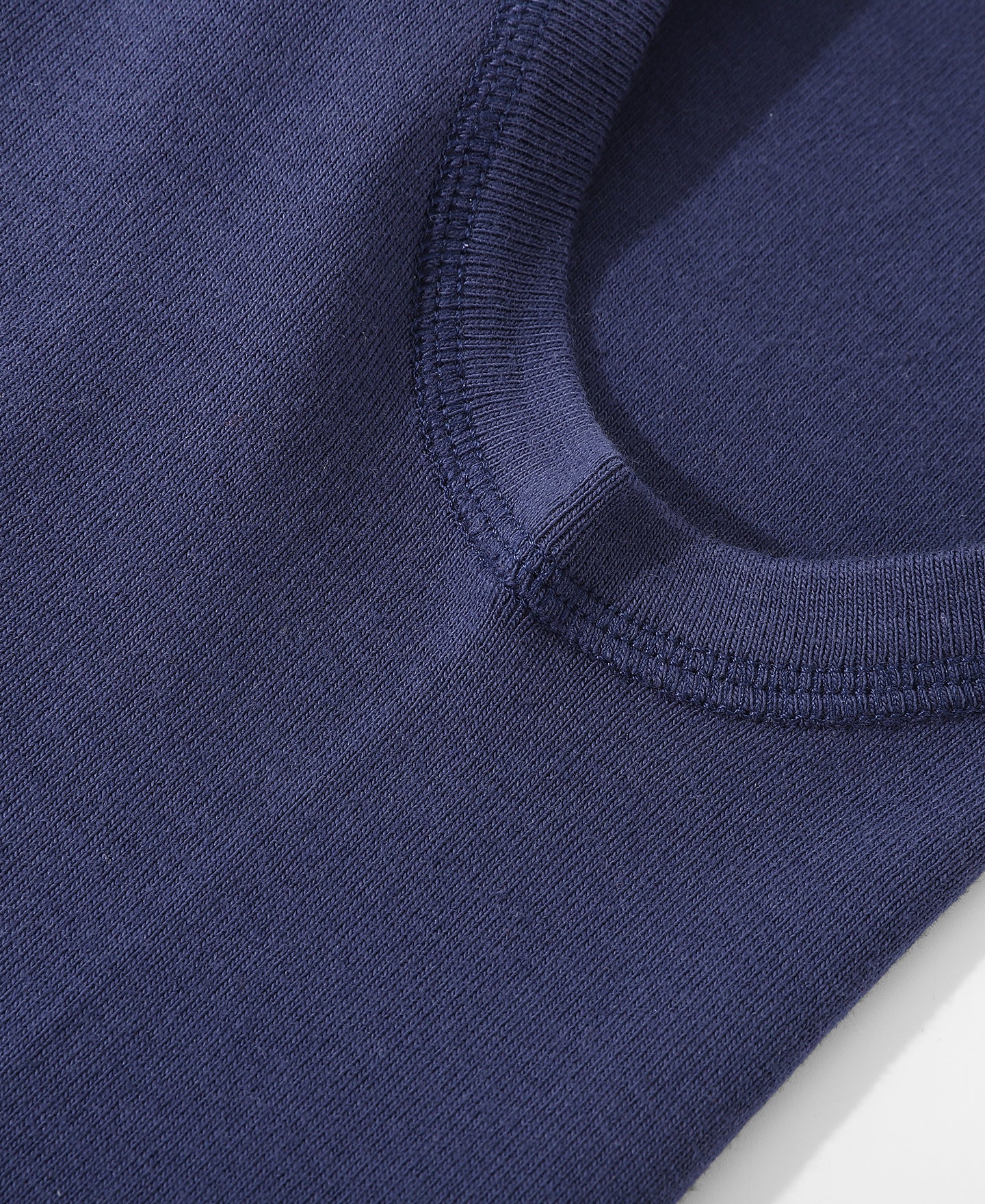Made from tubular knit fine-rib cotton with no side seams. U.S. cotton, with a pre-wash weight of 265g for a solid, comfortable feel. The rib fabric is based on original WWII-era pieces, offering excellent stretch and structure. Suitable for daily layering, outdoor activities, or training wear—all year round.