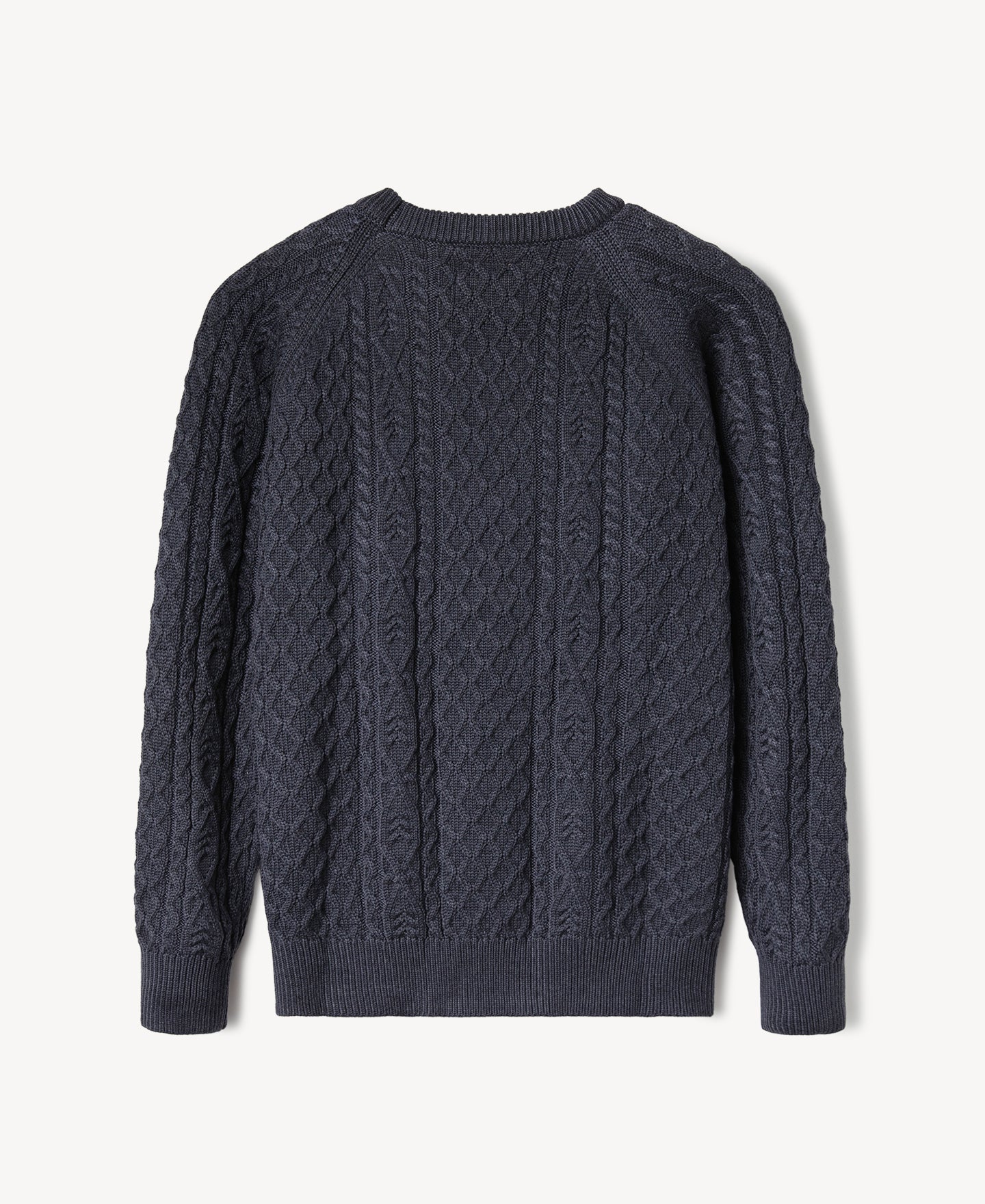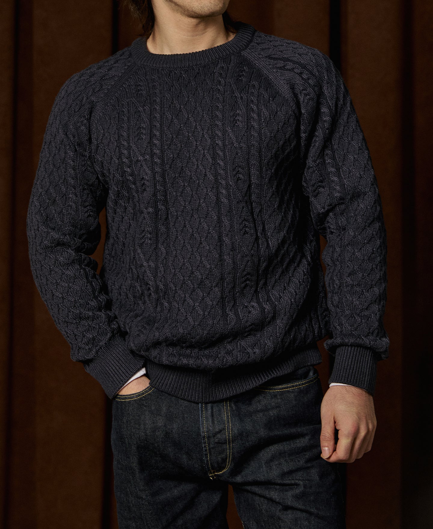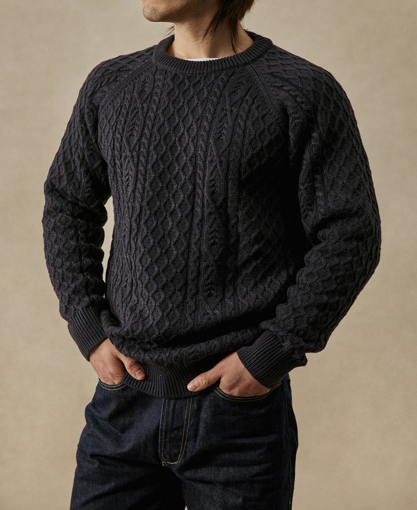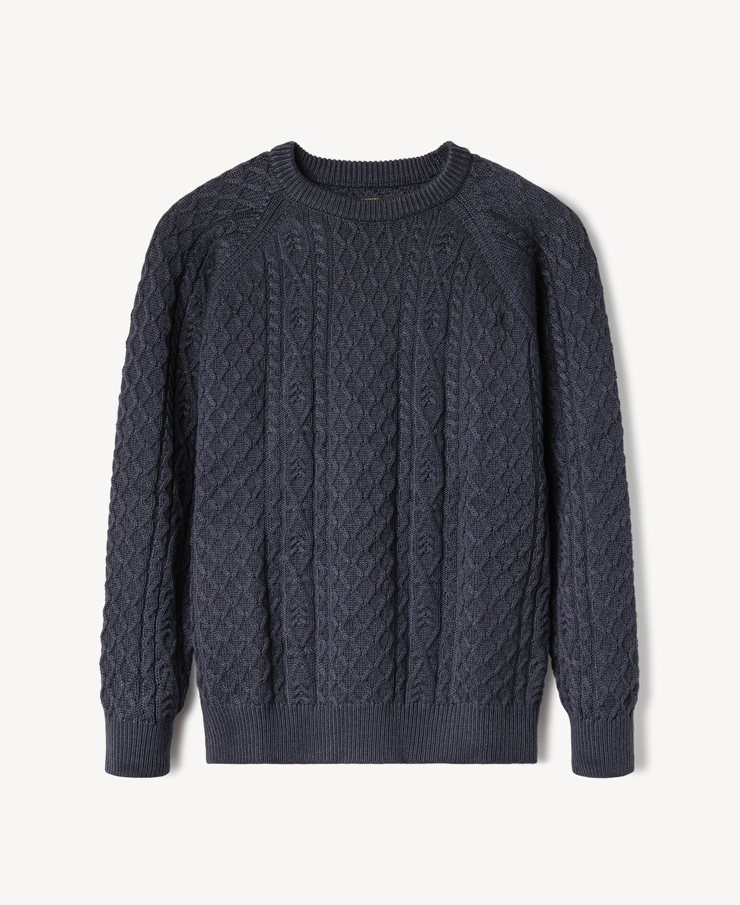 • Inspired by traditional British fisherman sweaters, this pullover features a classic Aran cable knit pattern — rich in texture, warm, and timeless in appeal.