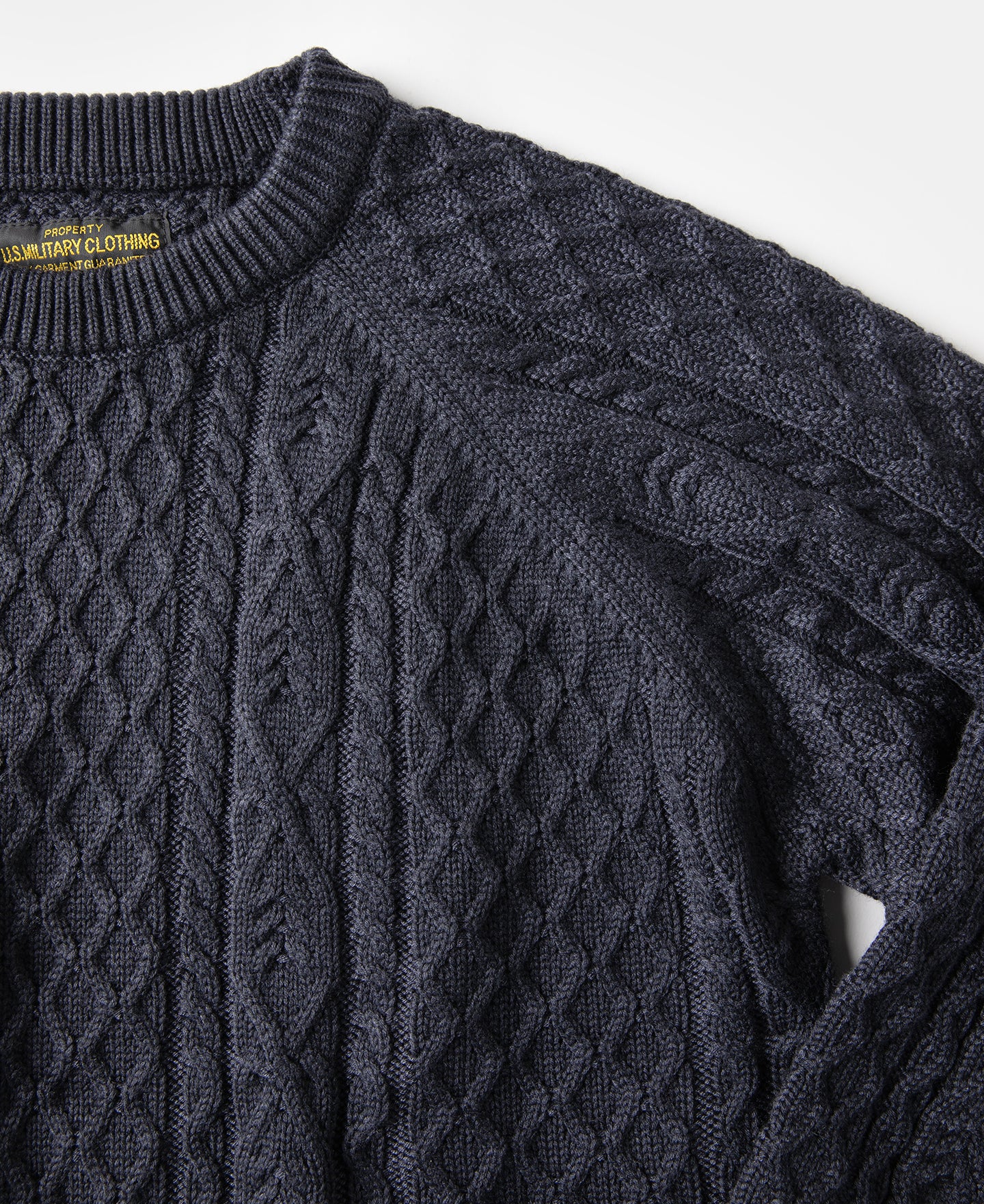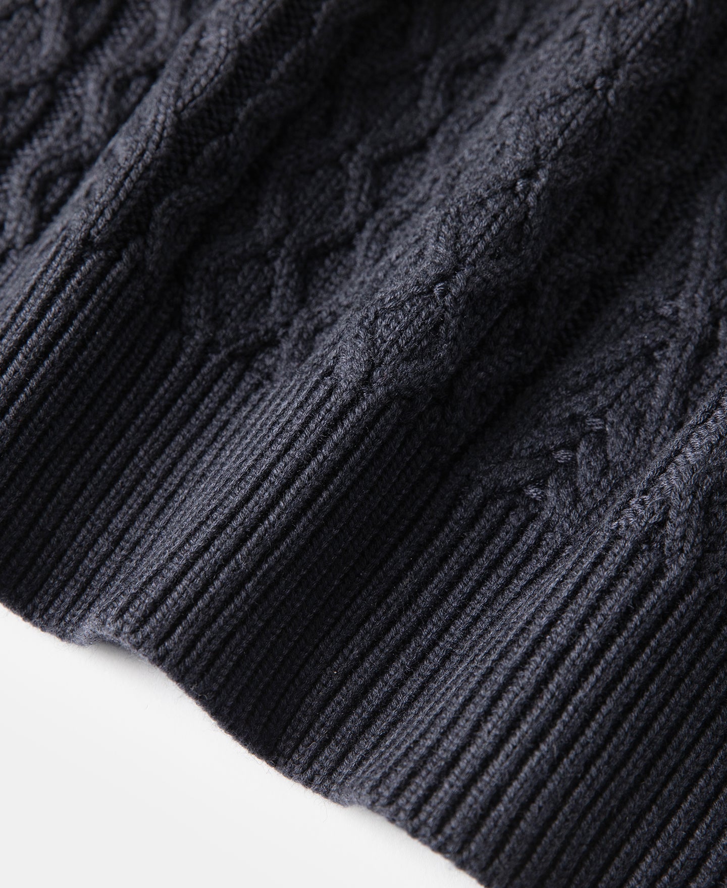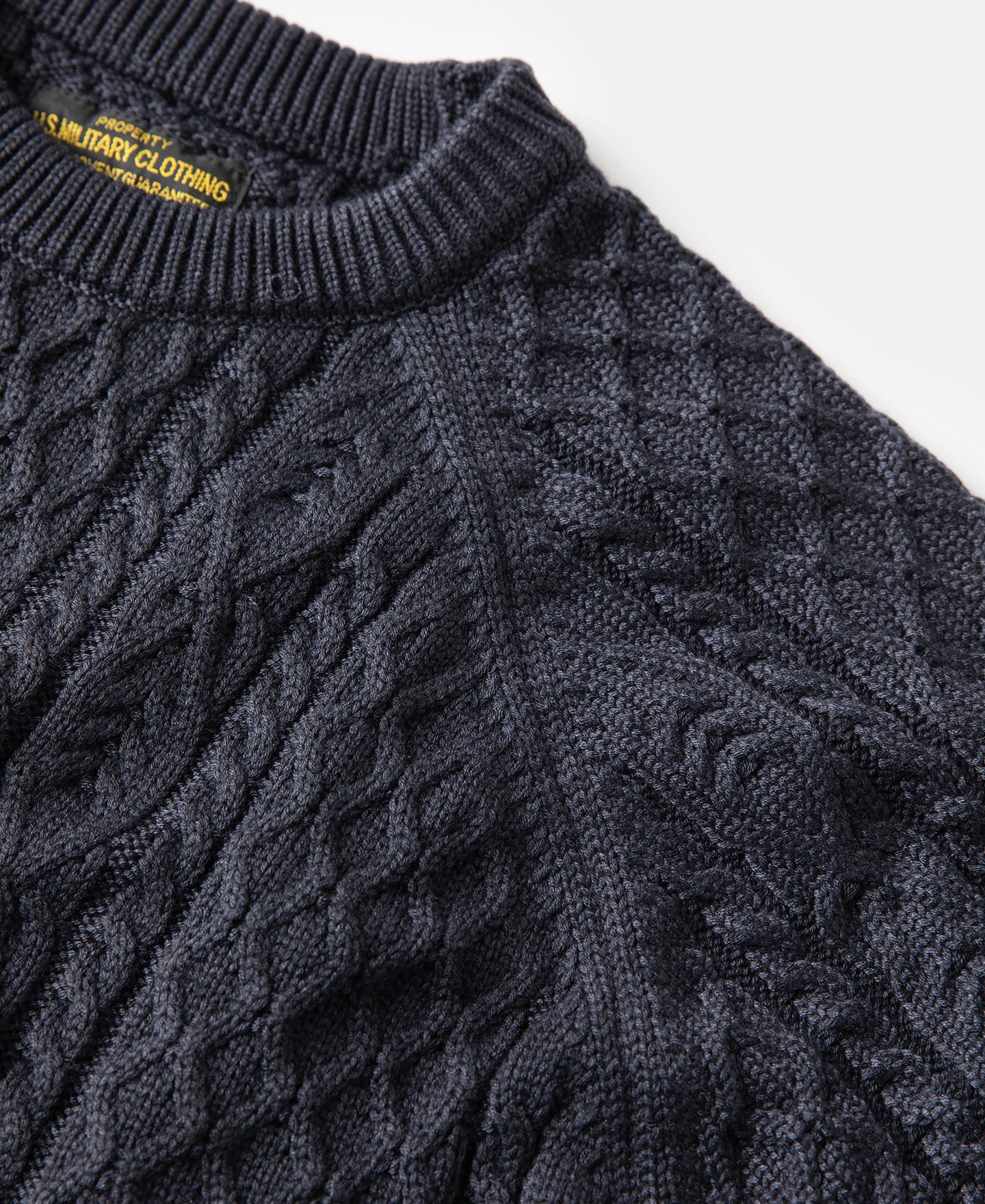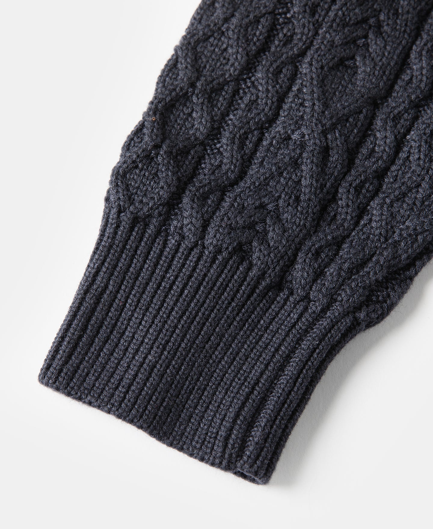 • Inspired by traditional British fisherman sweaters, this pullover features a classic Aran cable knit pattern — rich in texture, warm, and timeless in appeal.
