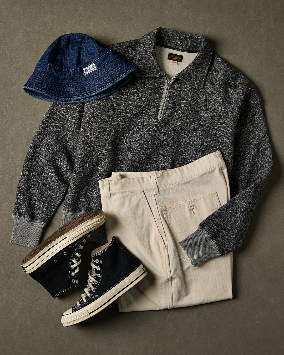 The Lot 123 Vintage Quarter Zip Sweatshirt revives a classic mid-century American sportswear staple.