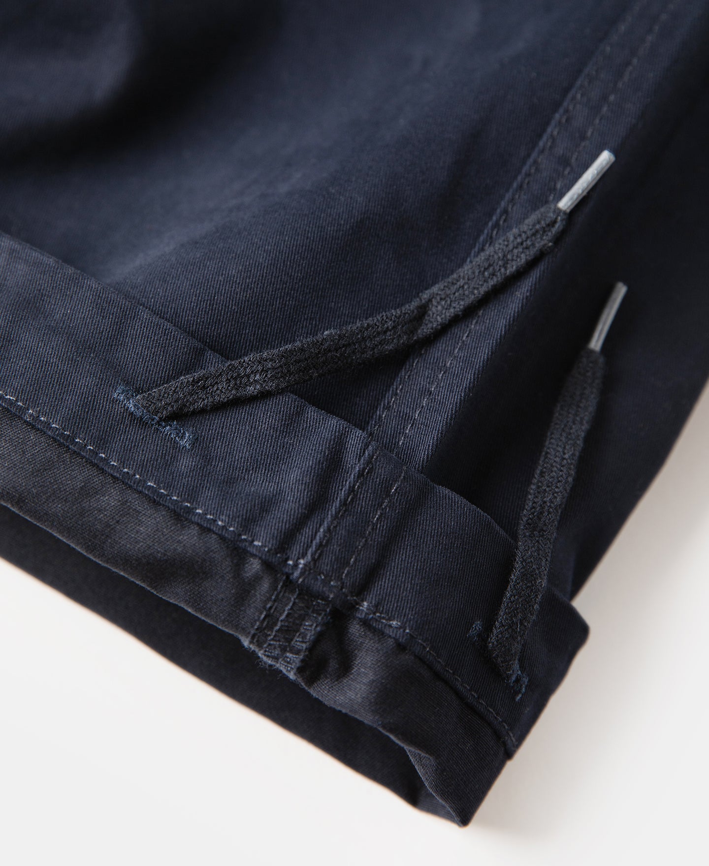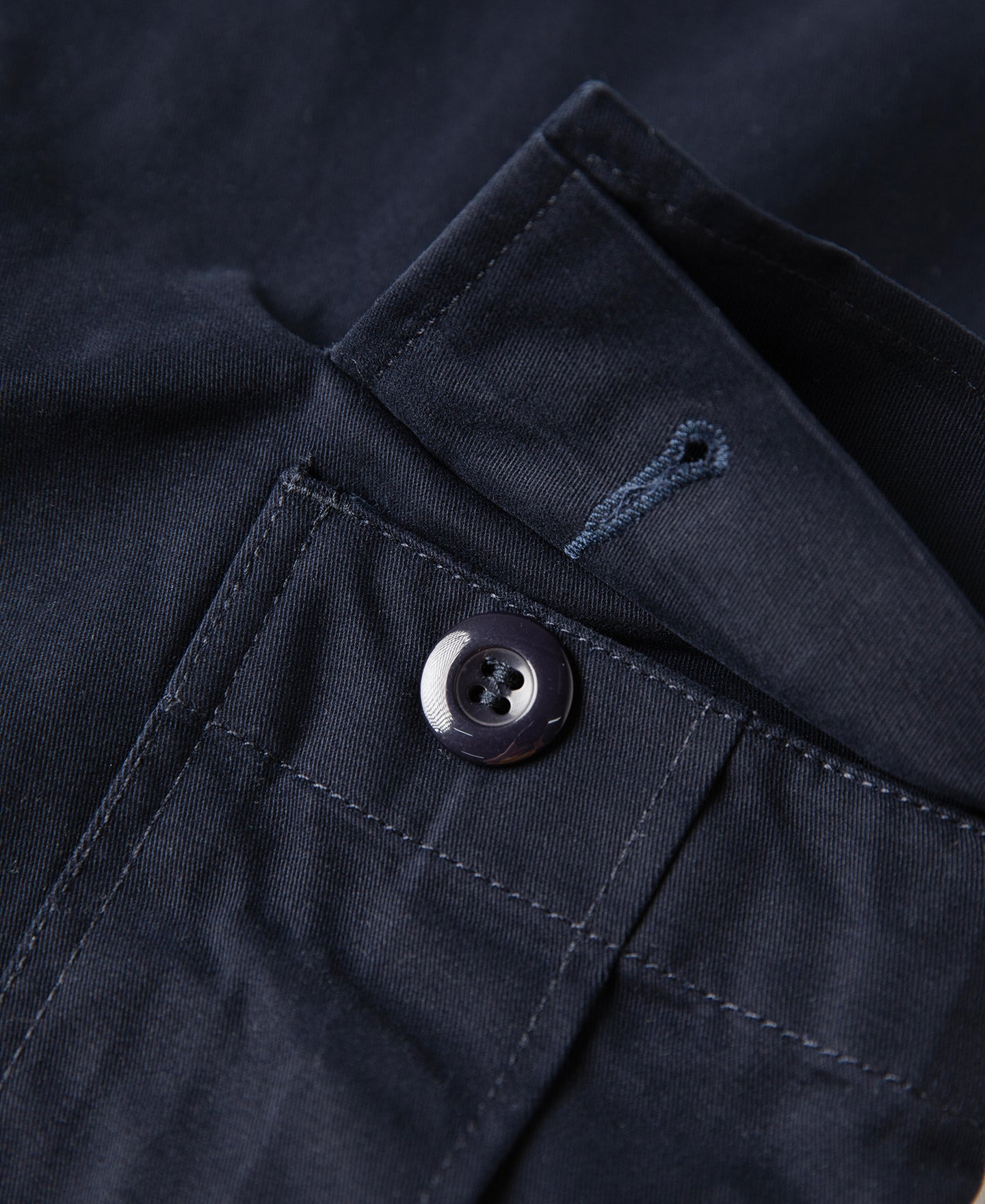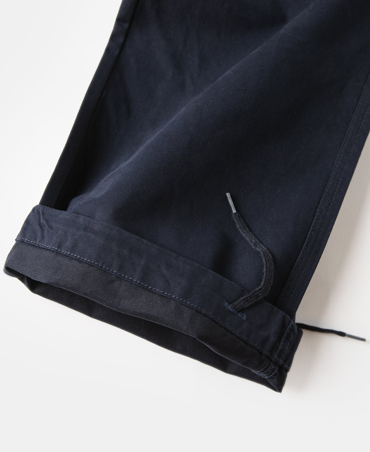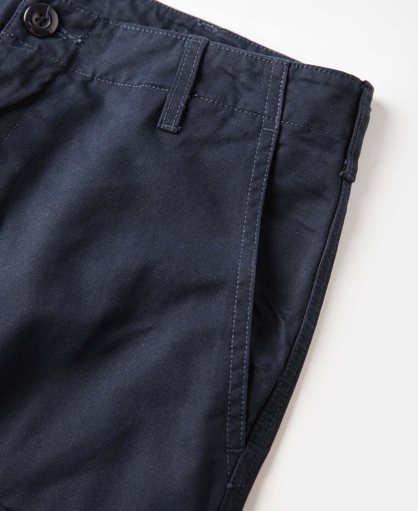 The Okonkwo Modified M-65 Cargo Pants reimagine the classic US Army M-65 field trousers with a modern fit. The silhouette has been slimmed down from the original oversized cut, making it more versatile for daily wear. Iconic details such as adjustable waist tabs and drawstring hems are retained, while the front pockets are streamlined without flaps. Rear pockets feature angled flaps for added depth, and the side cargo pockets conceal an extra compartment for storing small essentials like a lighter.