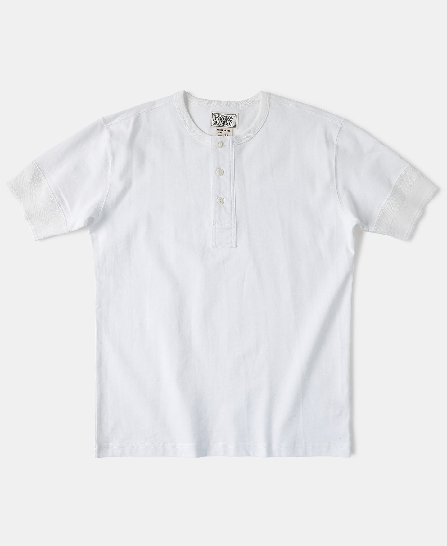 This Henley tee is a faithful reproduction of vintage styles from 1880s-1920s, retaining signature details such as the wide front placket and ribbed cuffs.